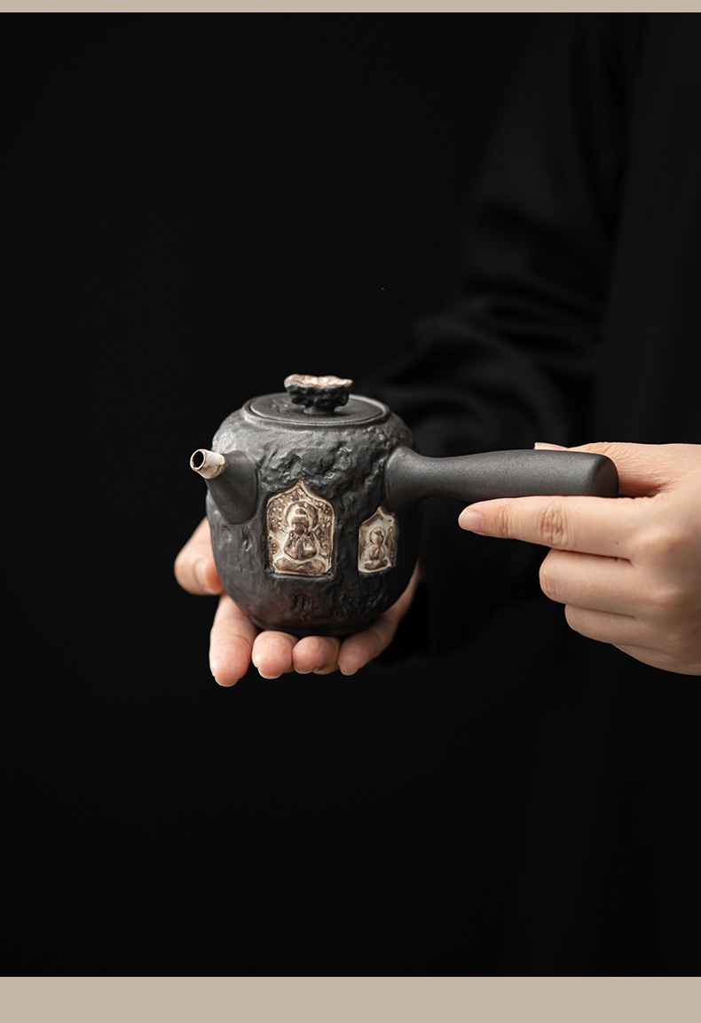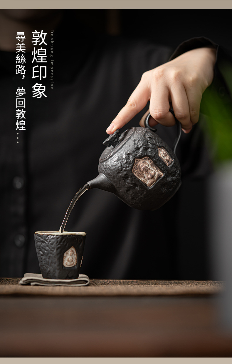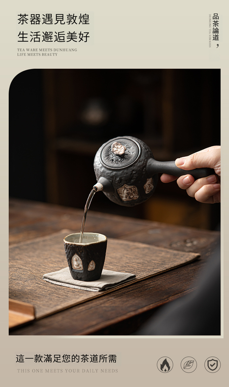 敦煌-荷葉側把壺