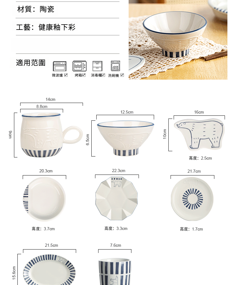 日式北極熊餐具卡通浮雕