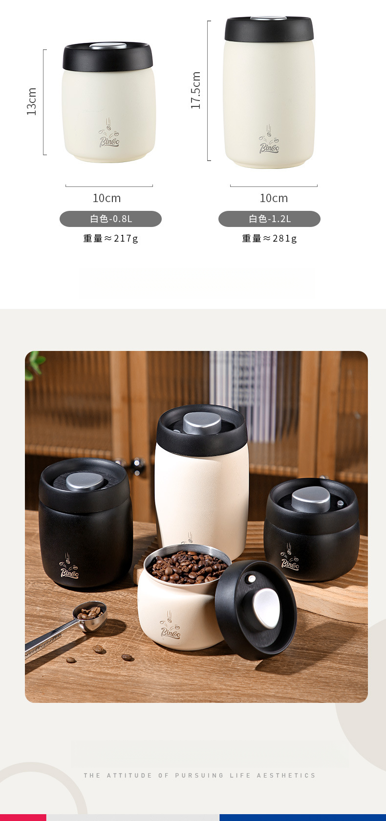 【磨砂白】抽真空密封罐1200ml≈450g咖啡豆