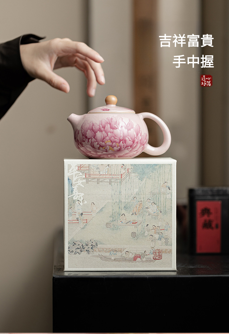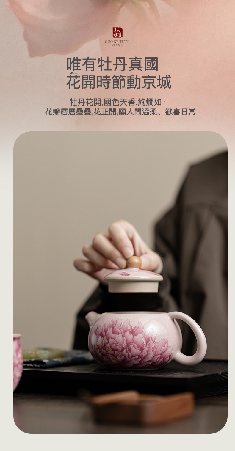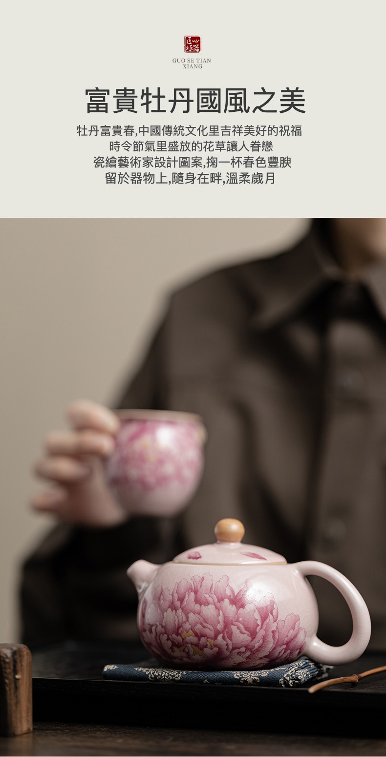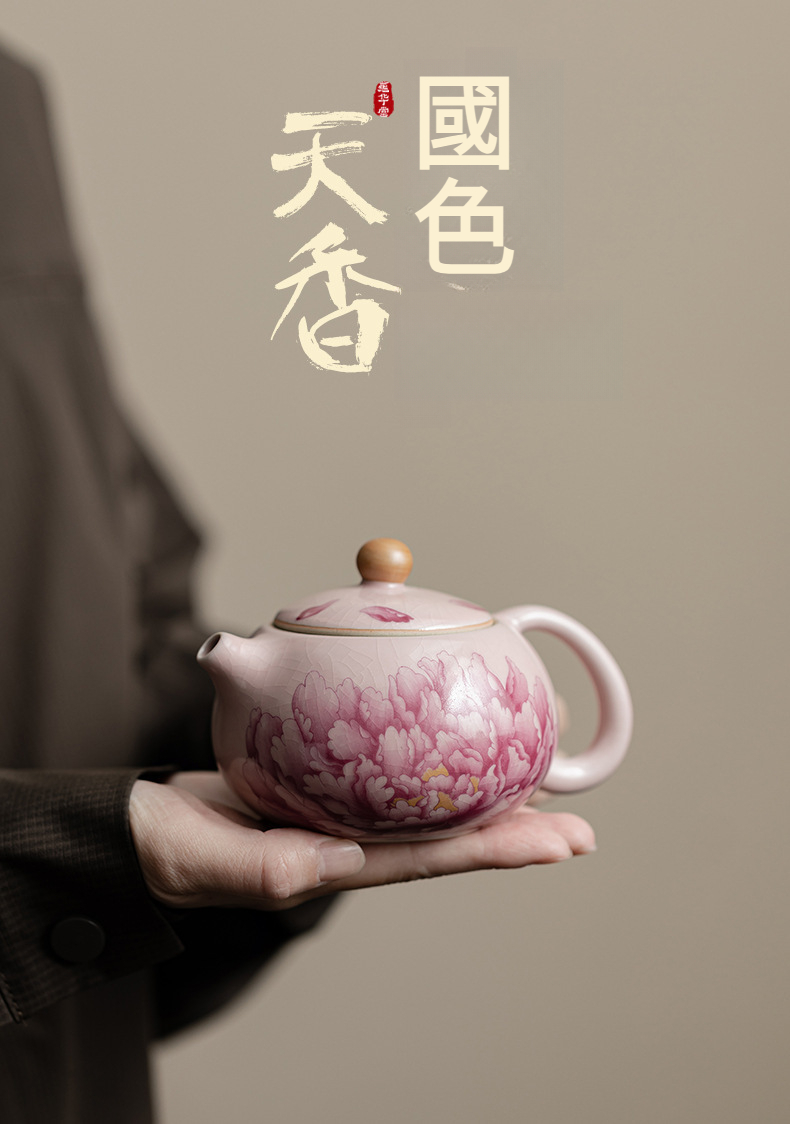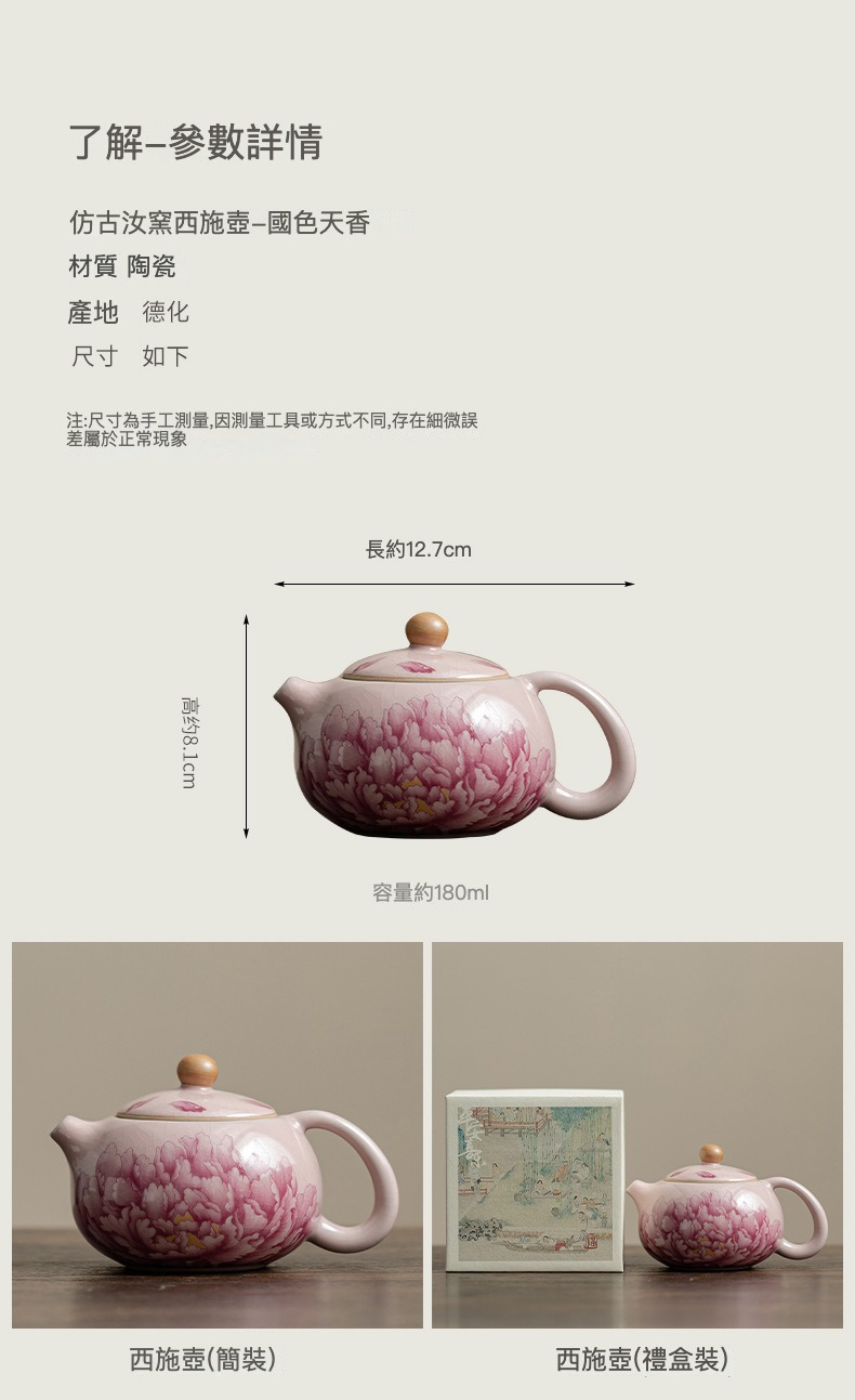 國色天香仿古粉汝牡丹西施壺