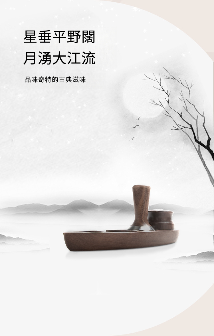 意式船型胡桃木壓粉座佈粉器收納套裝