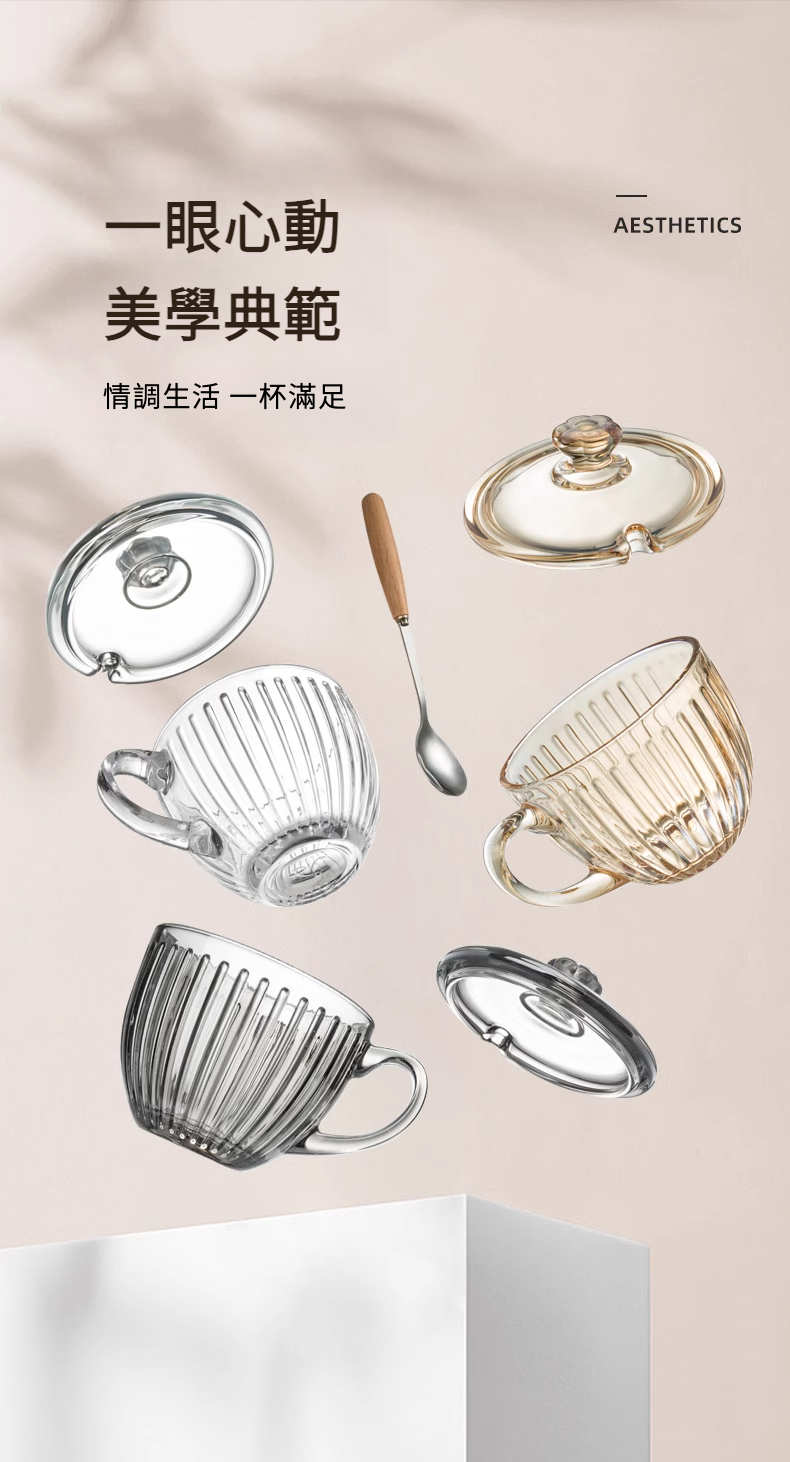1只琥珀色豎紋杯+玻璃蓋+櫻花勺