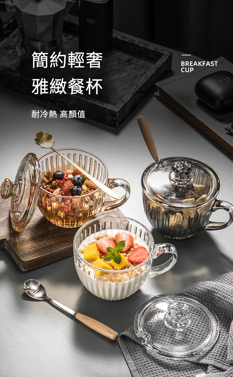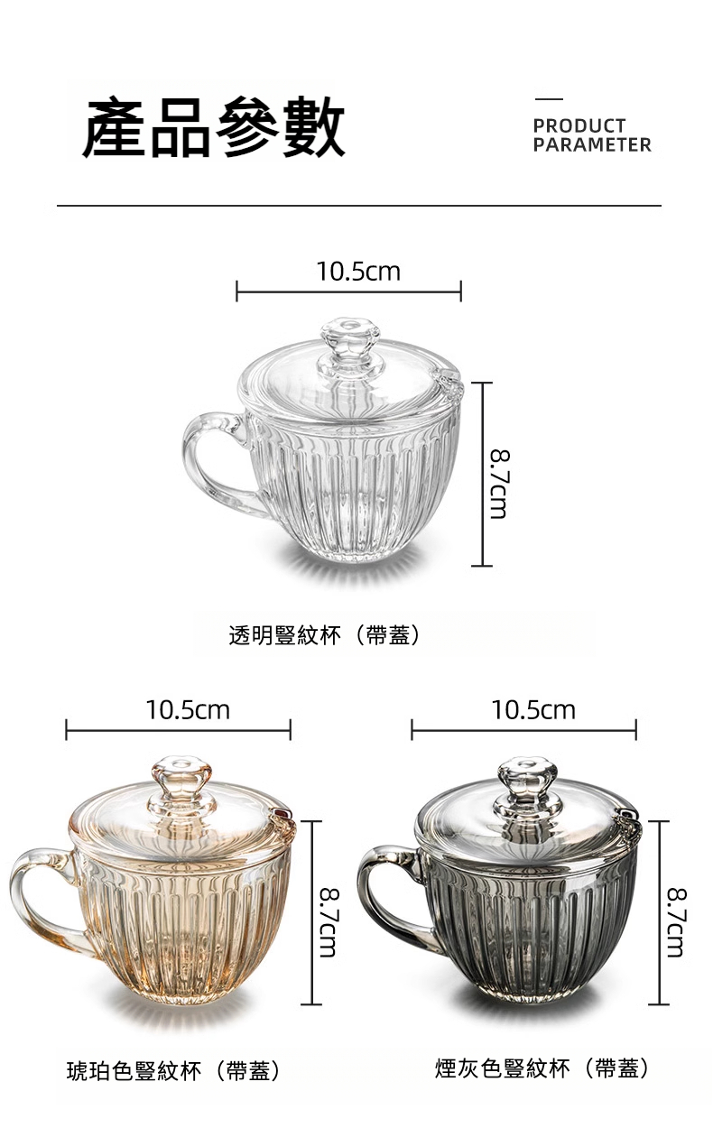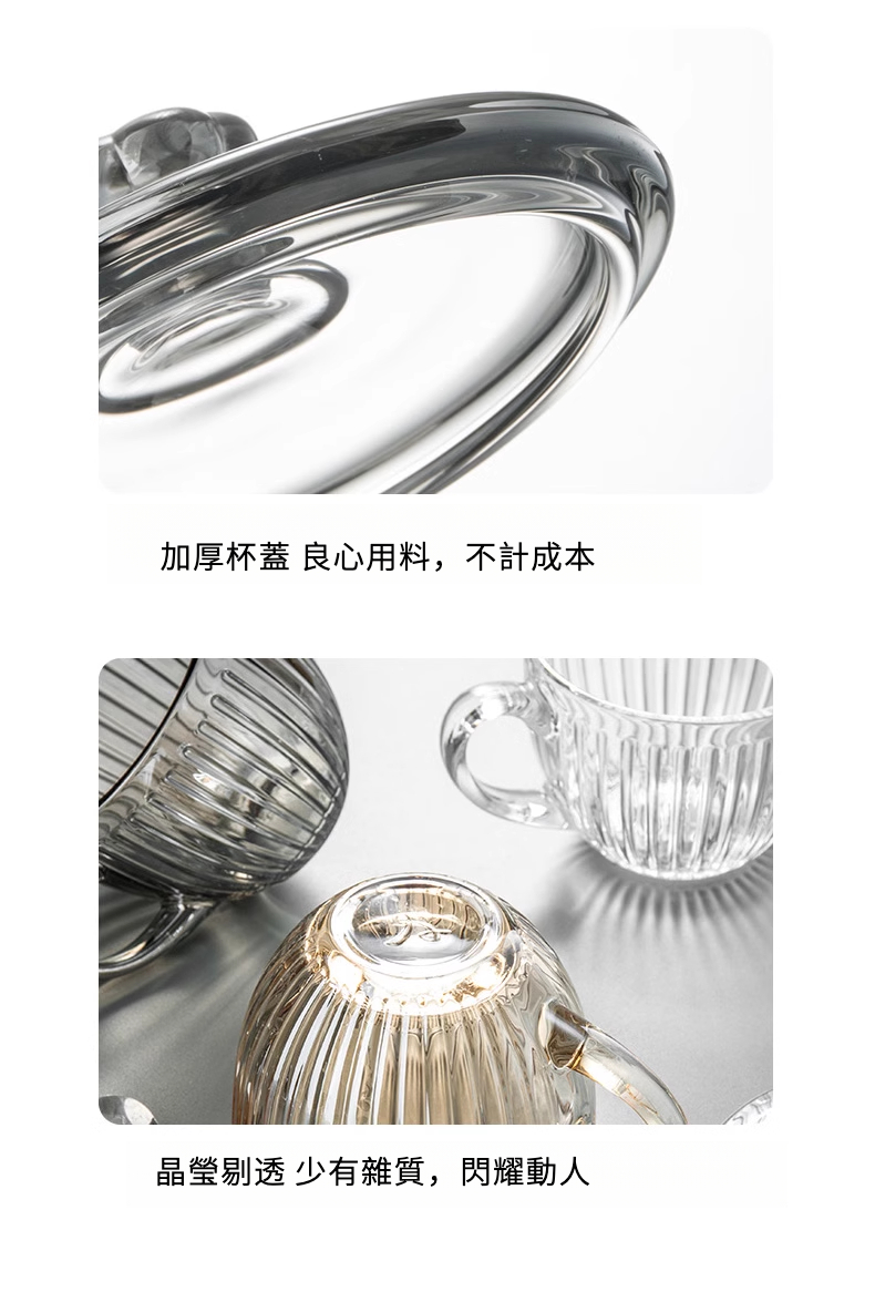 1只煙灰色豎紋杯+玻璃蓋+櫻花勺