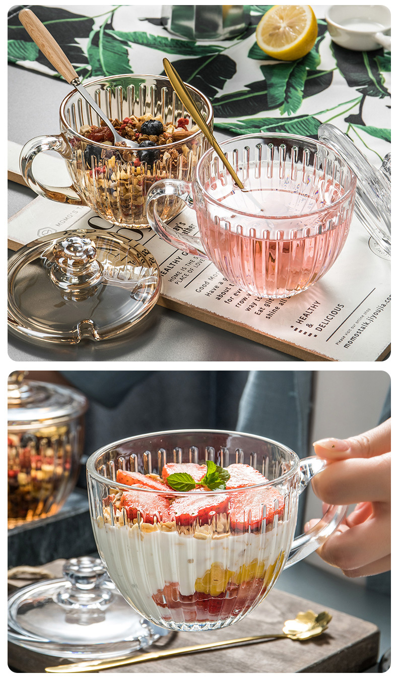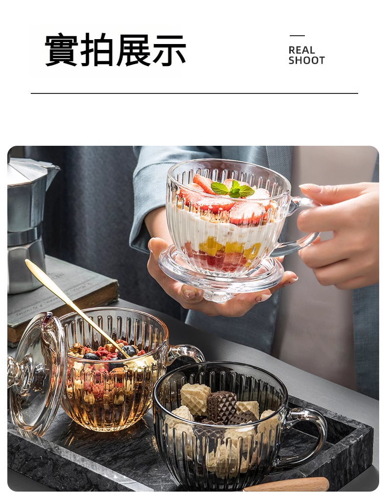 1只透明豎紋杯+玻璃蓋+櫻花勺