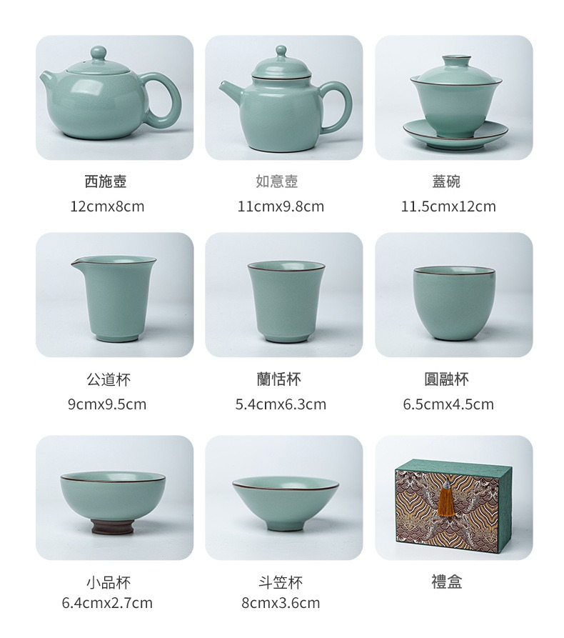 天青款-蓋碗+公道杯+小品杯斗笠杯禮盒裝