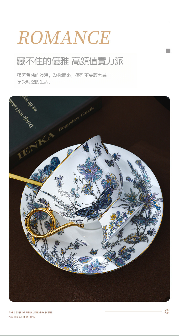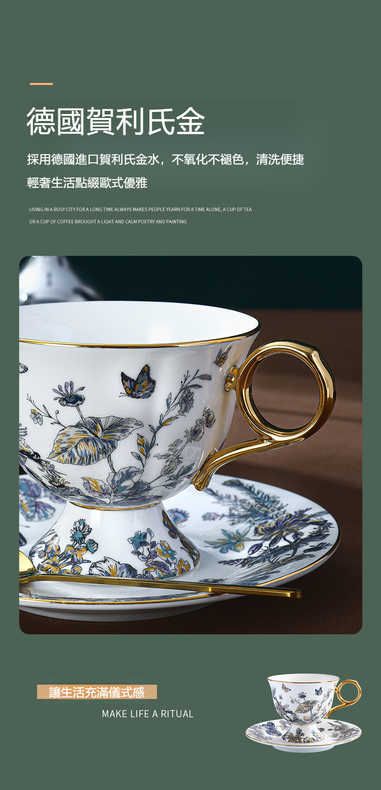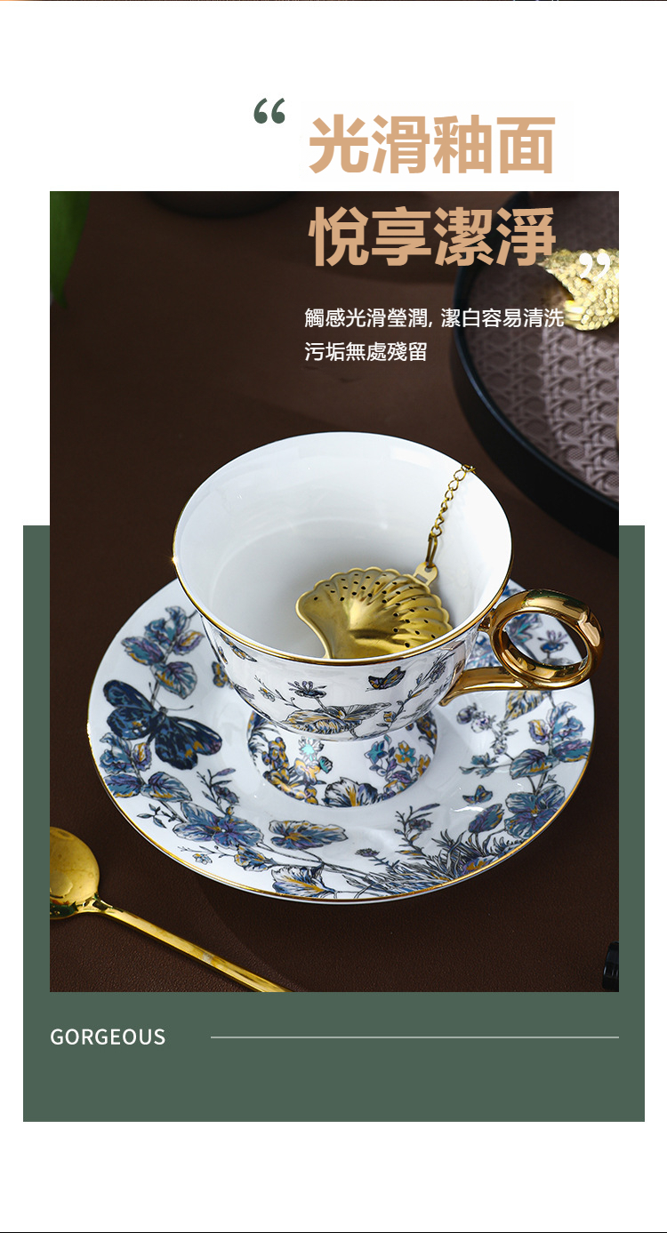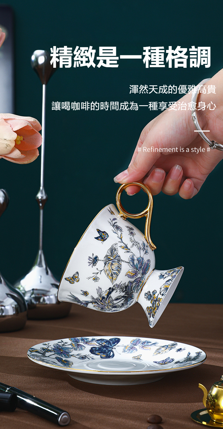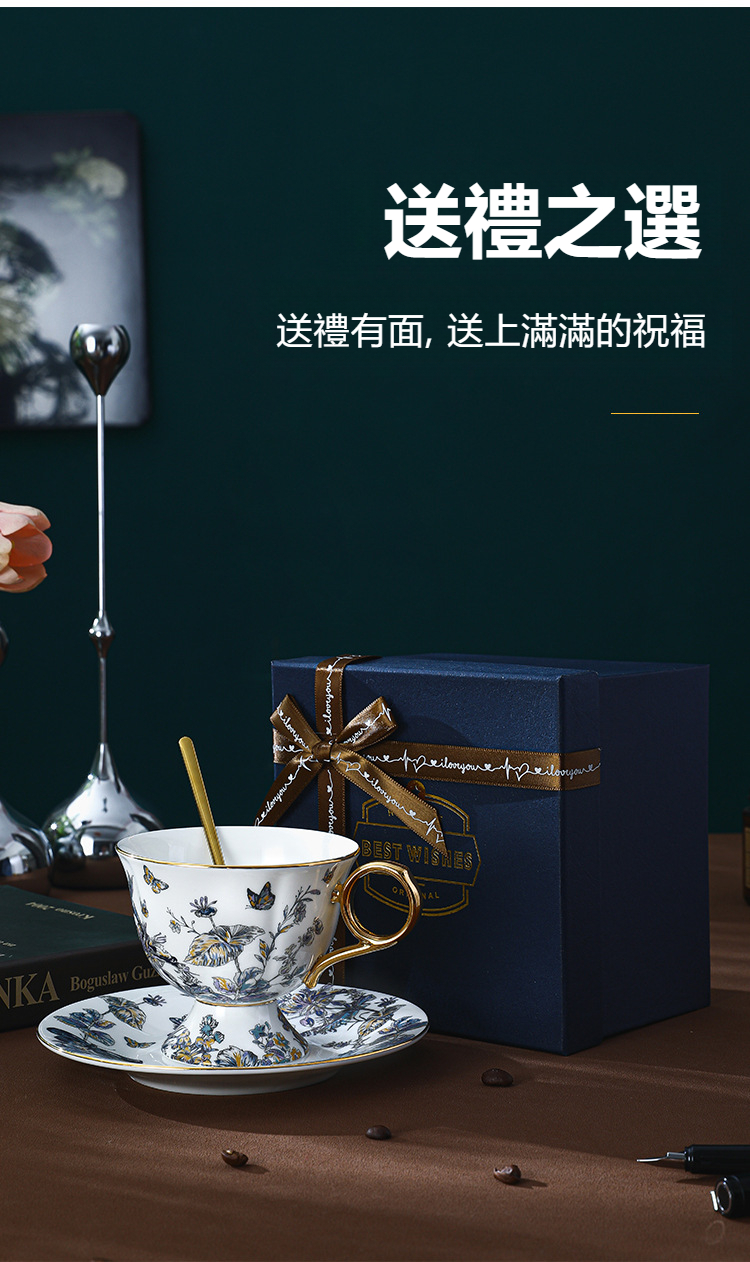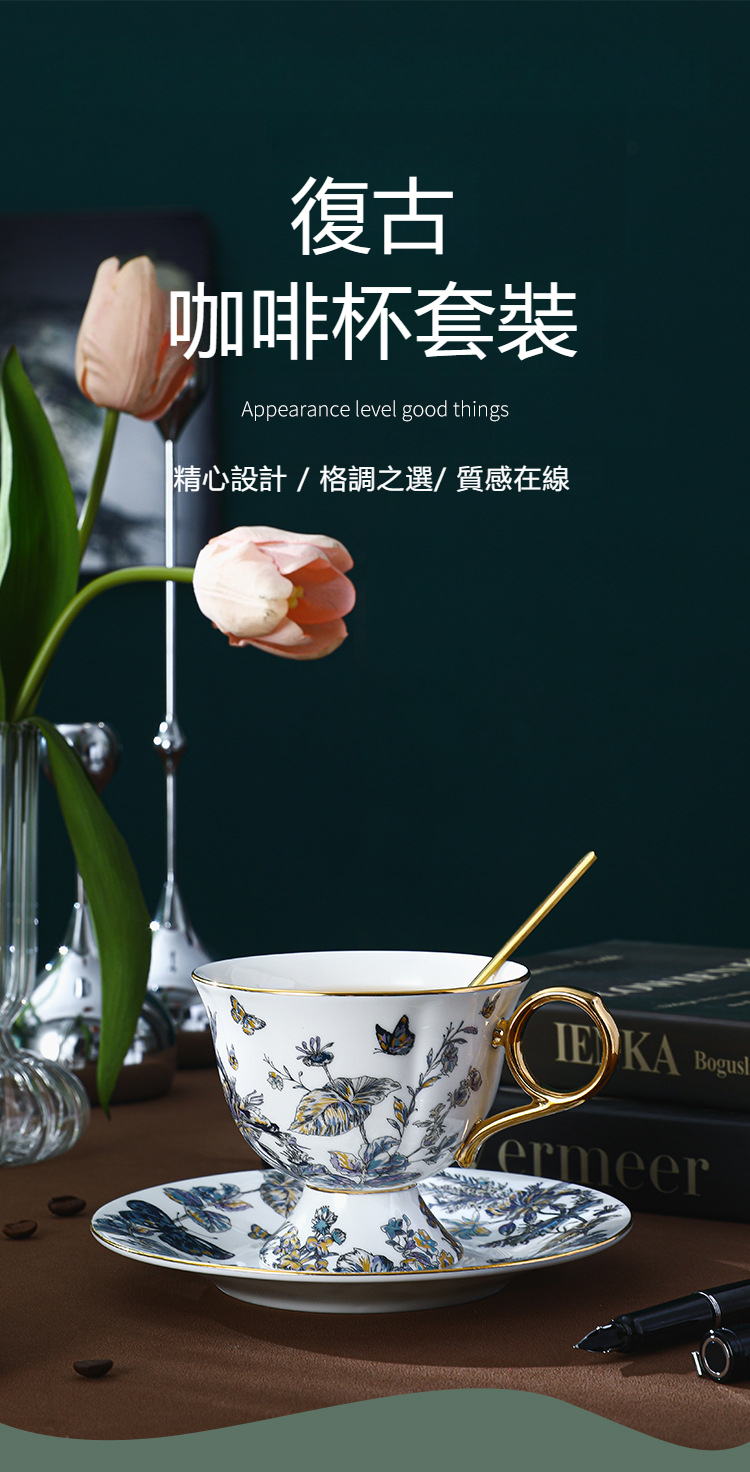 復古高腳設計歐式骨瓷咖啡杯碟套裝