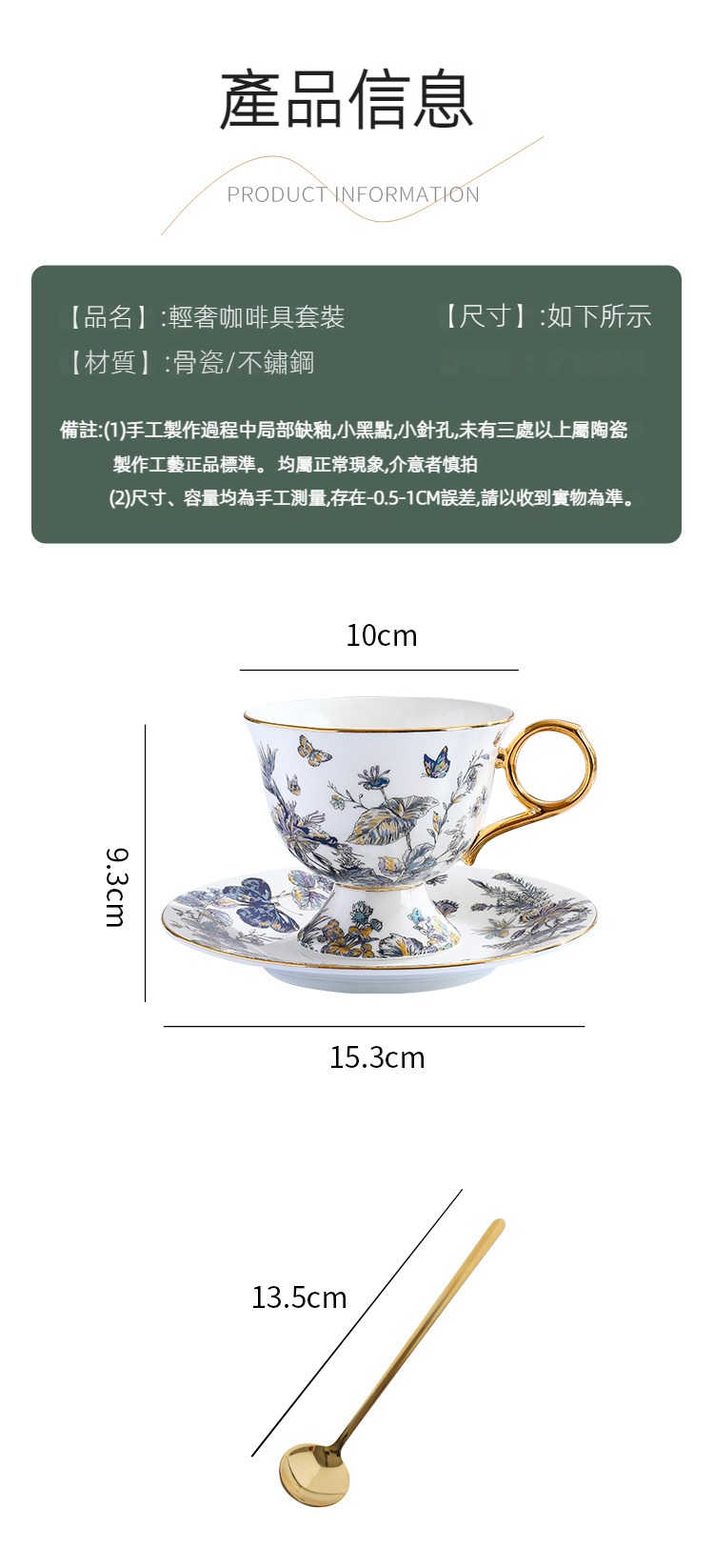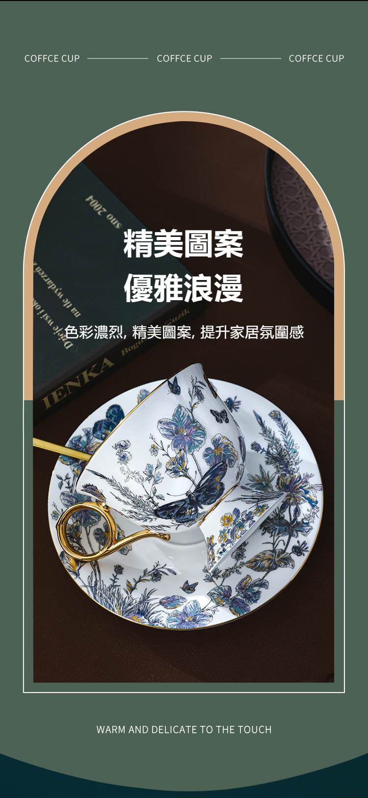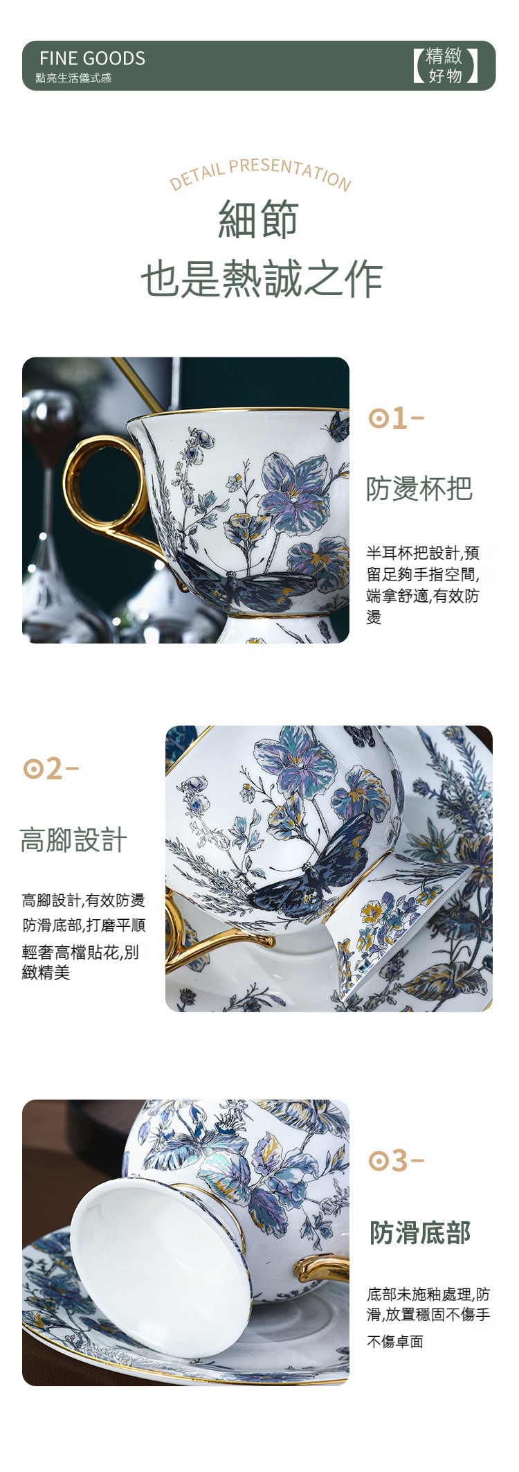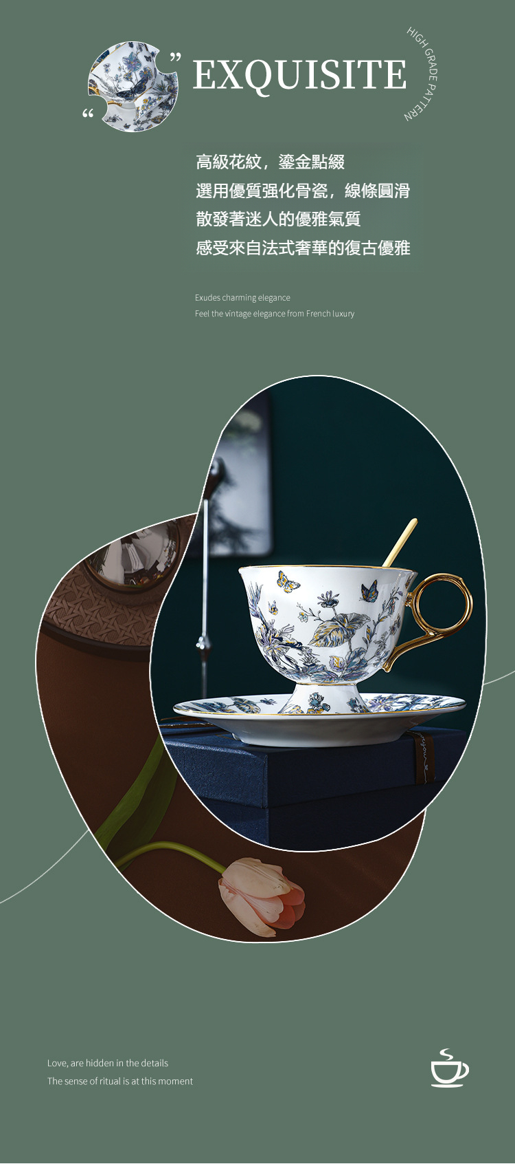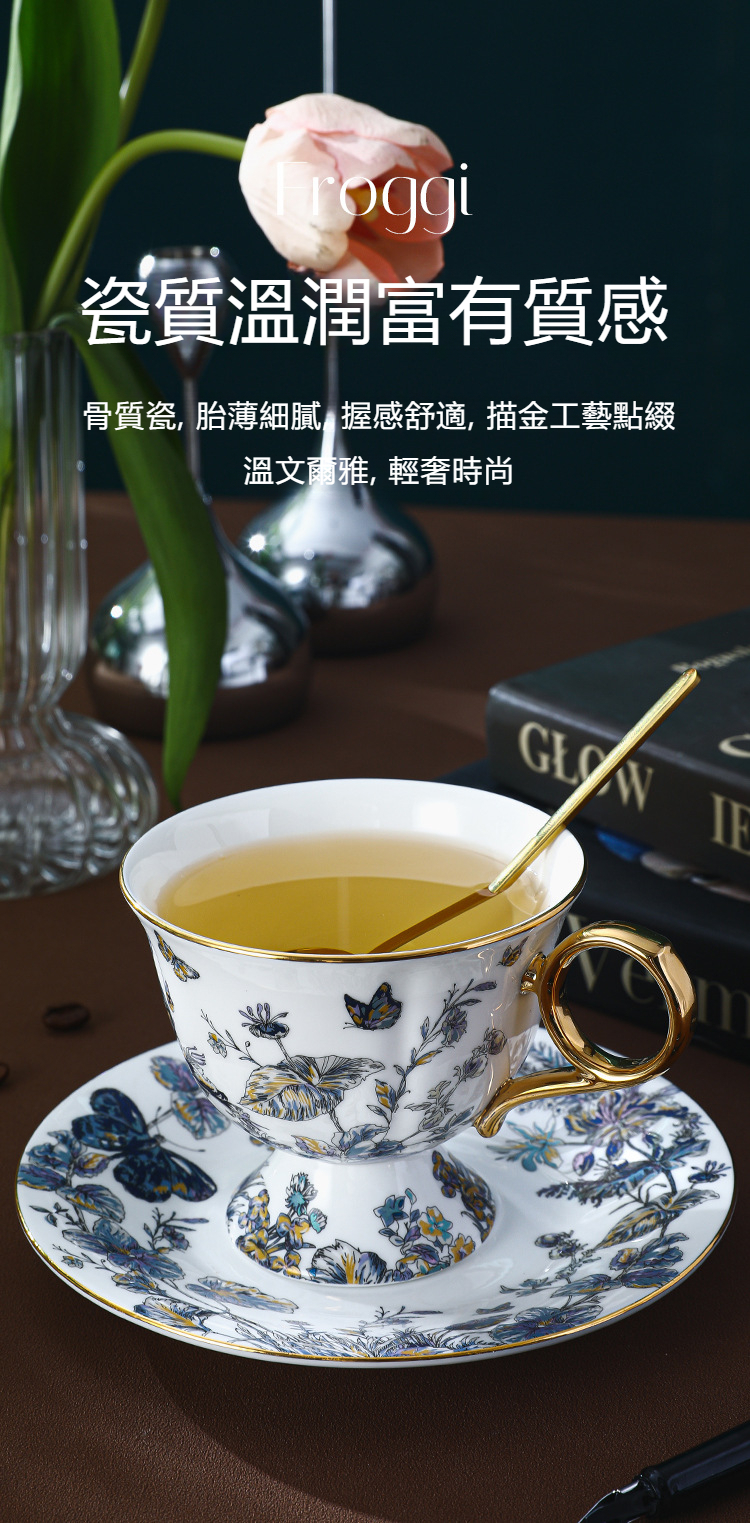 復古高腳設計歐式骨瓷咖啡杯碟套裝