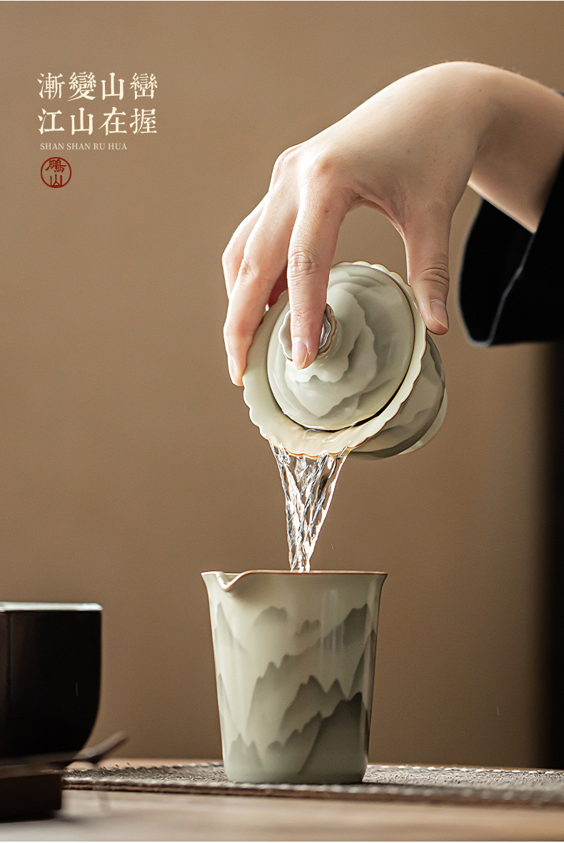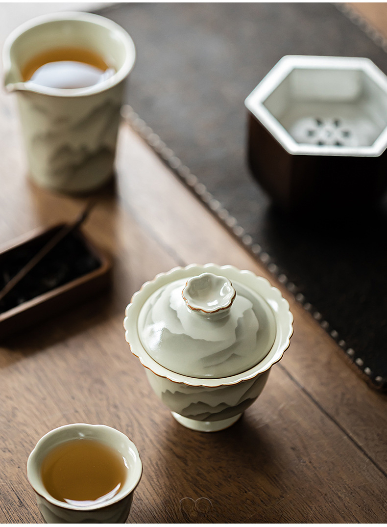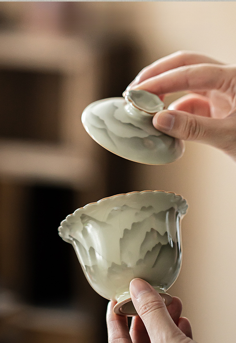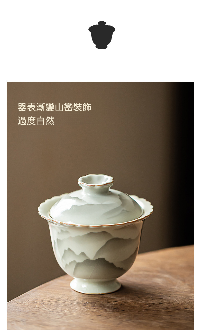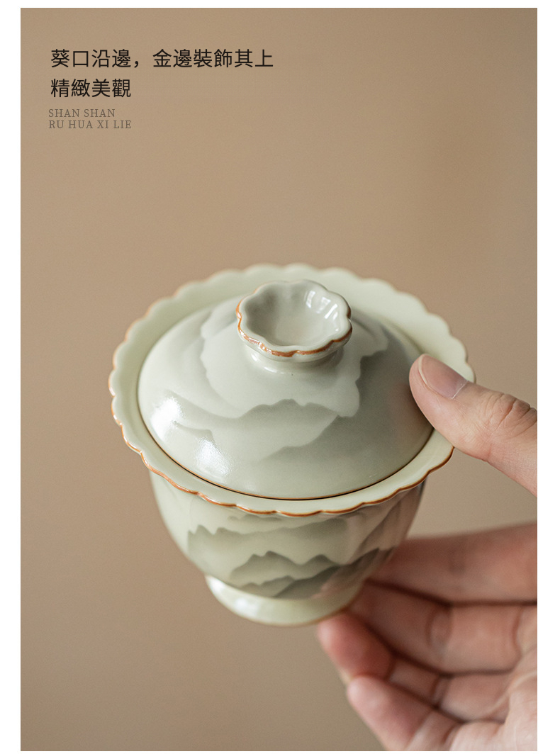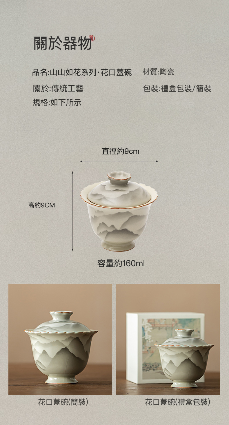 復古山山如花花口蓋碗