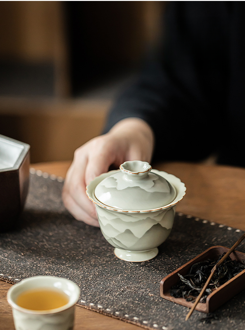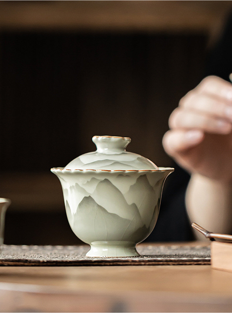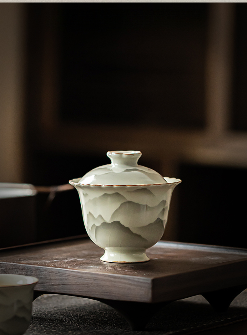 米黃汝窯手繪竹影系列