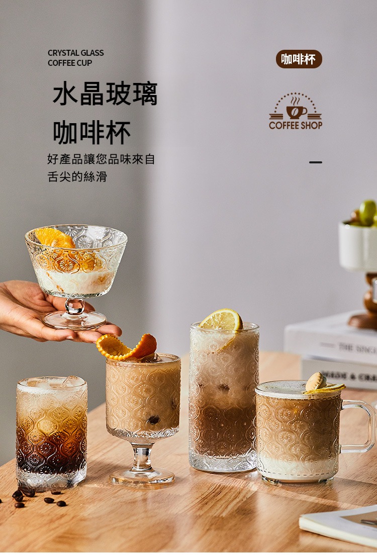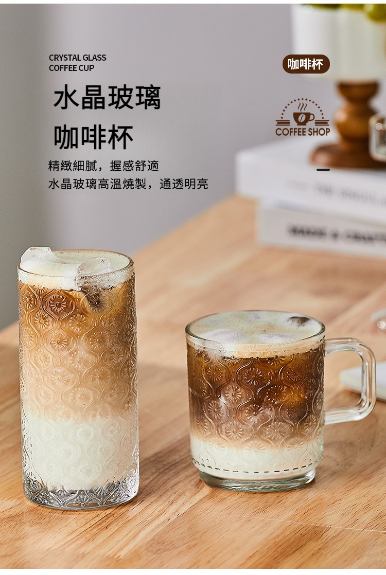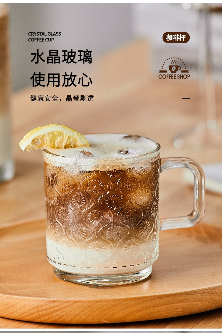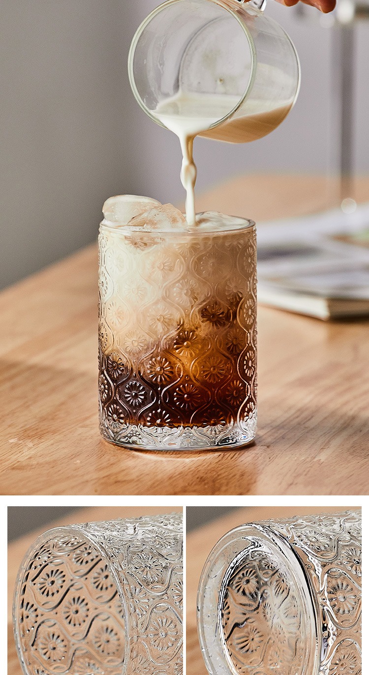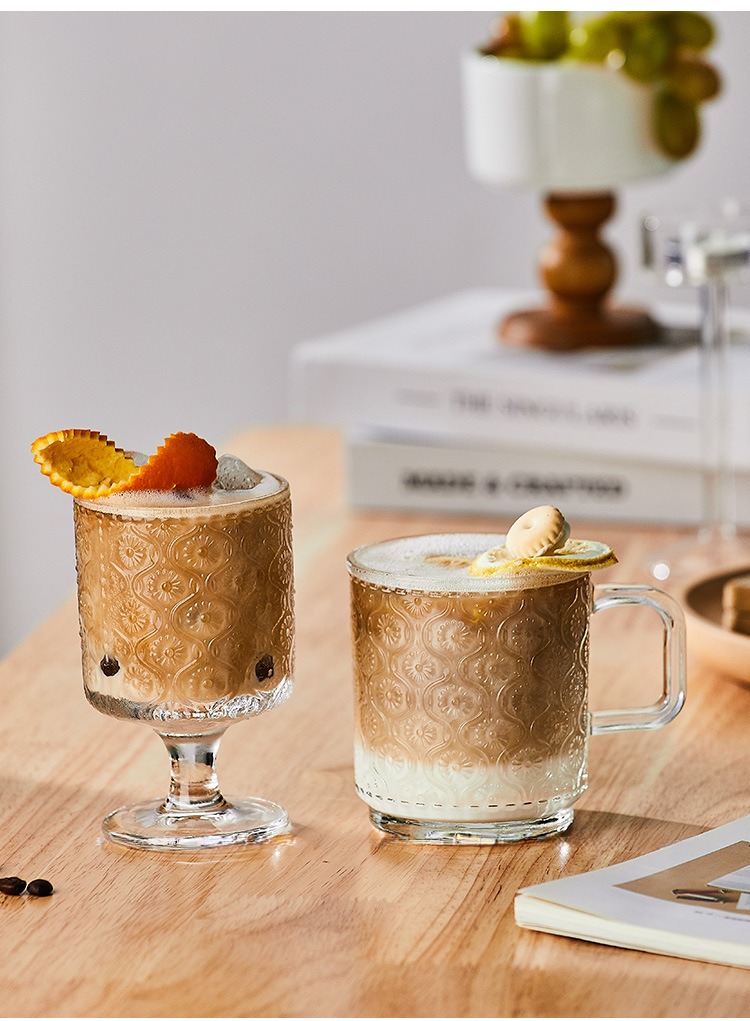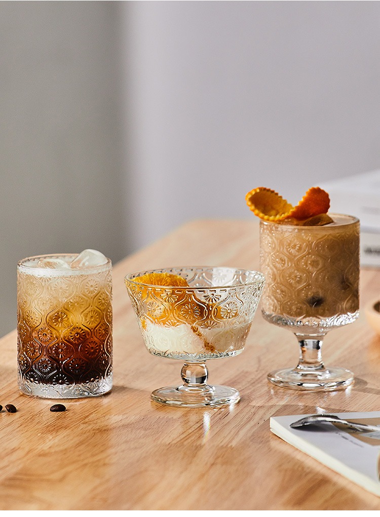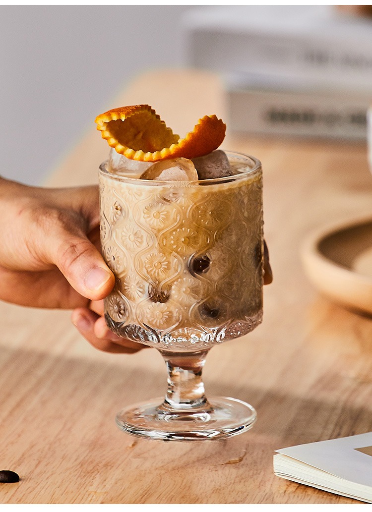 復古浮雕海棠花玻璃杯