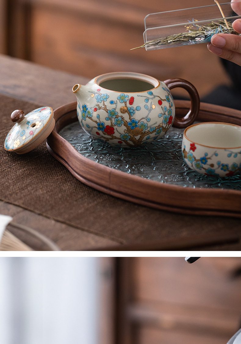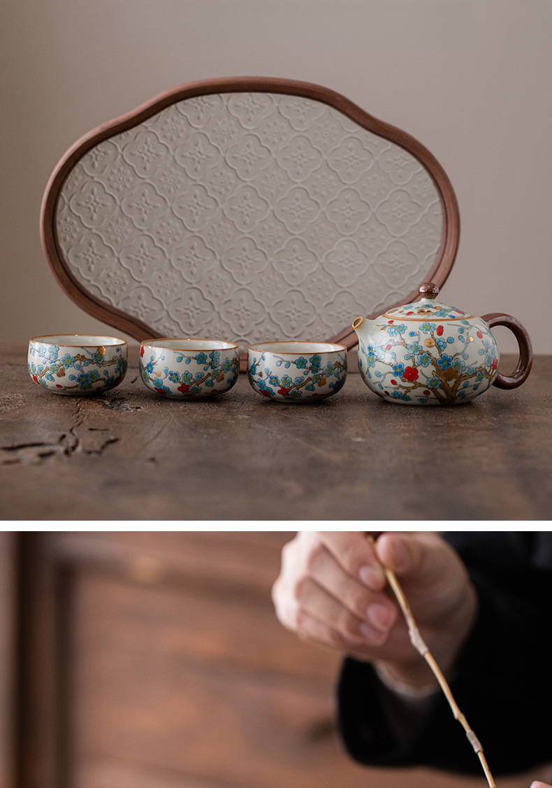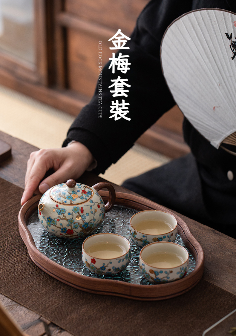 金梅茶壺-一壺三杯-海棠托盤
