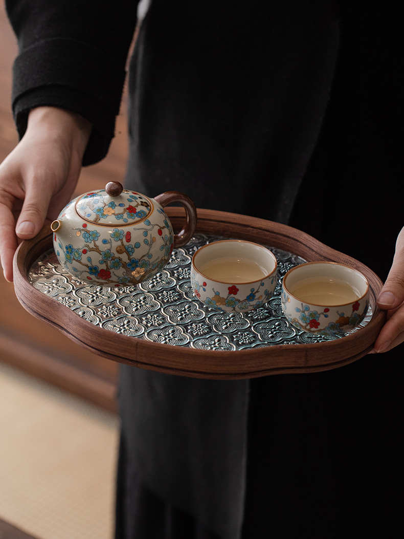 金梅茶壺-一壺二杯-海棠托盤
