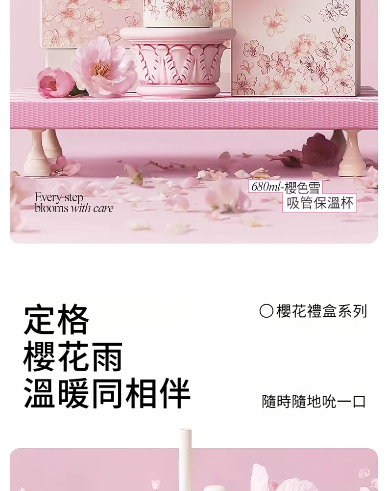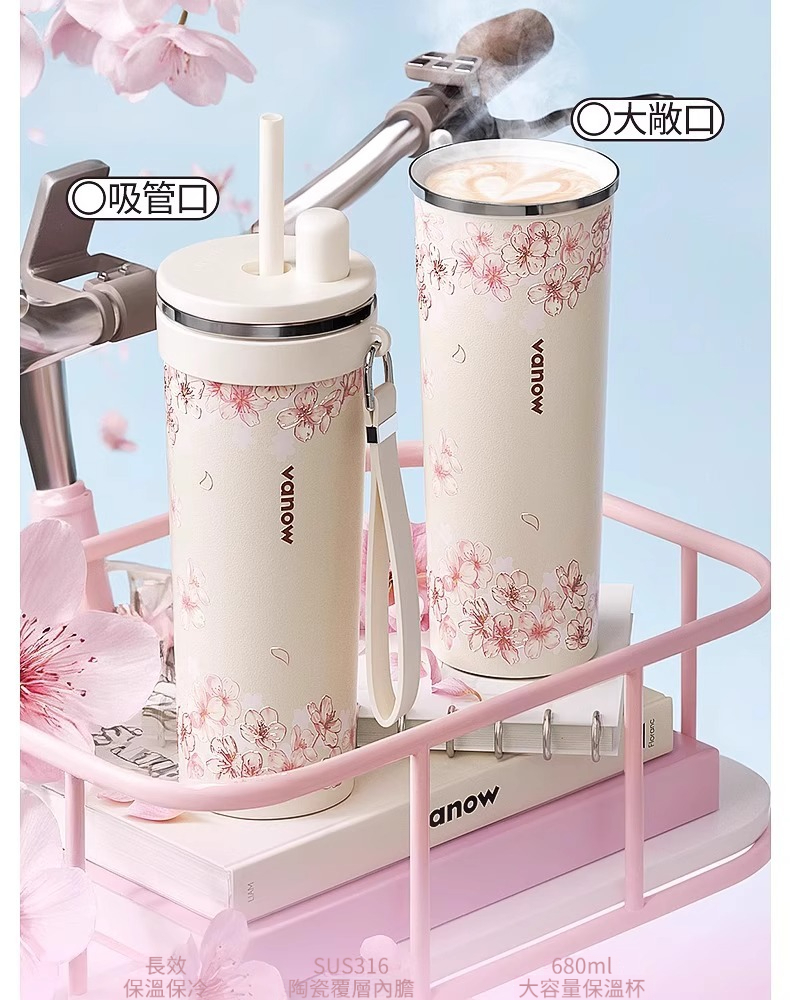 櫻色雪吸管保溫杯