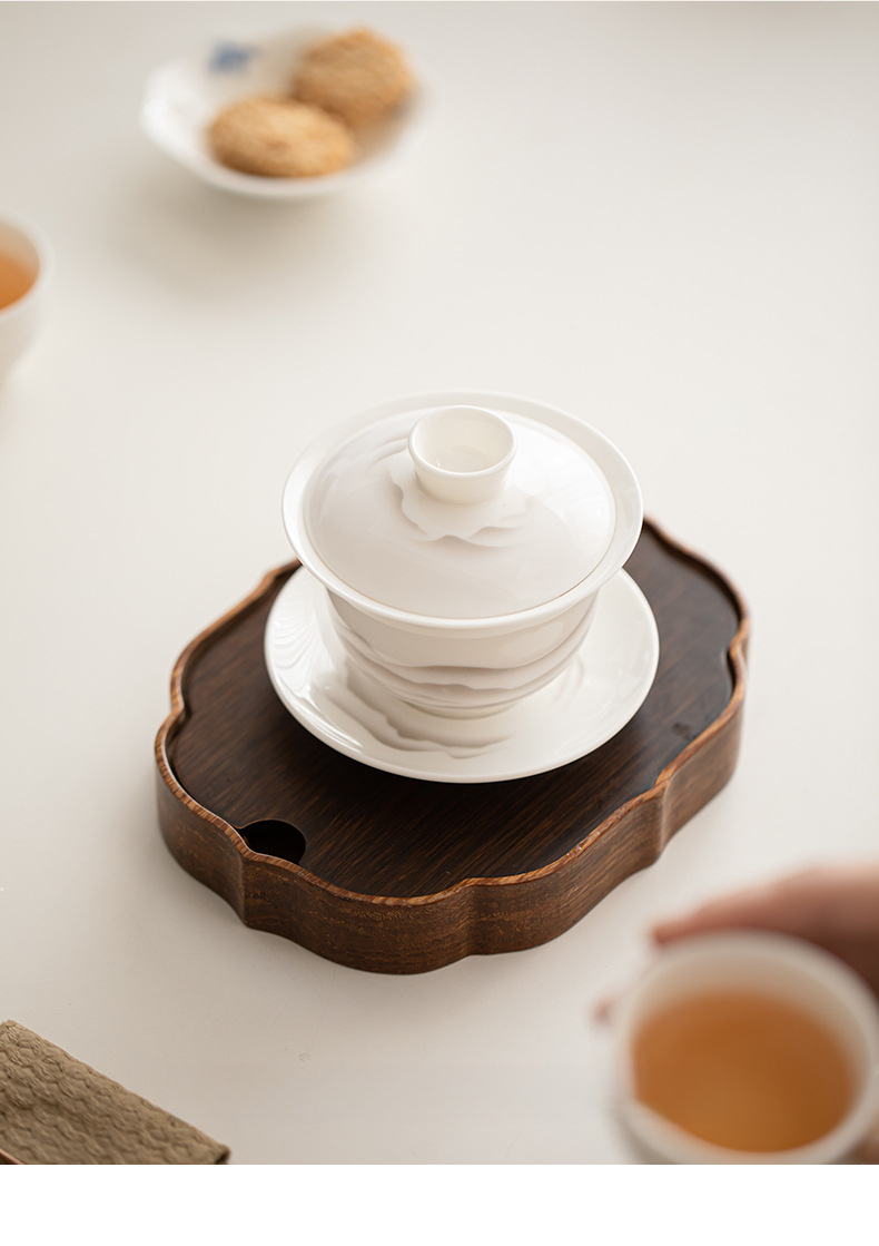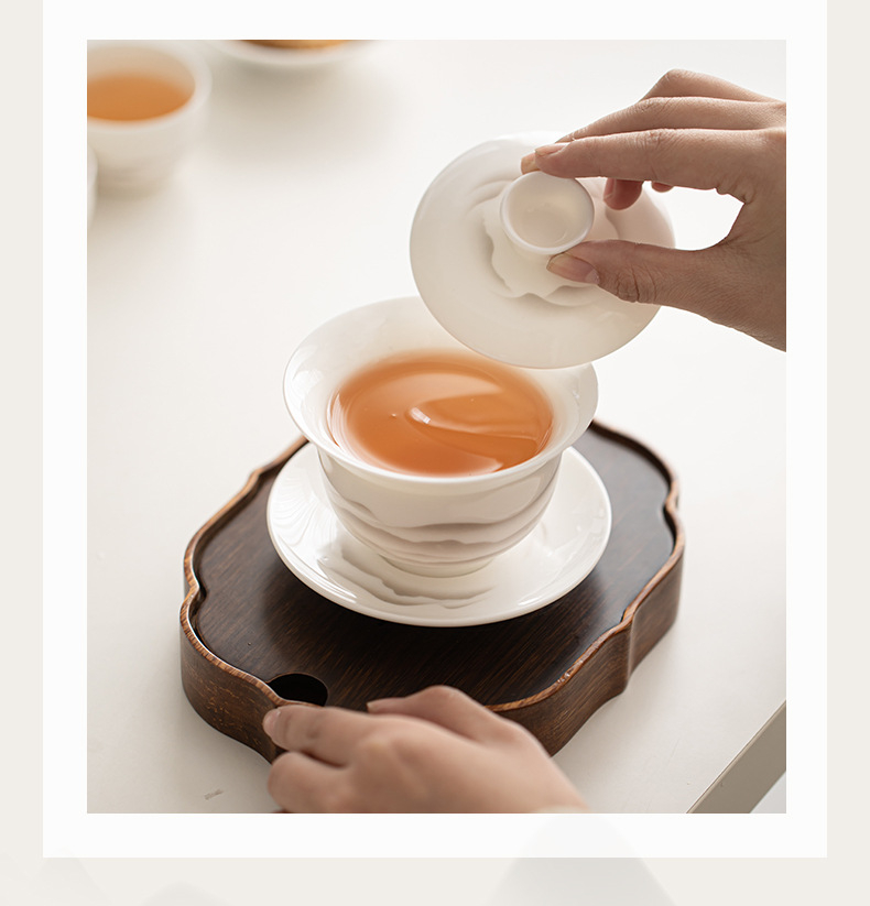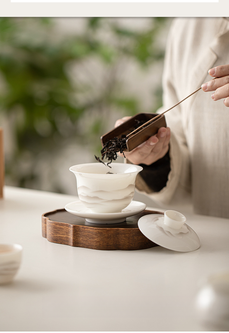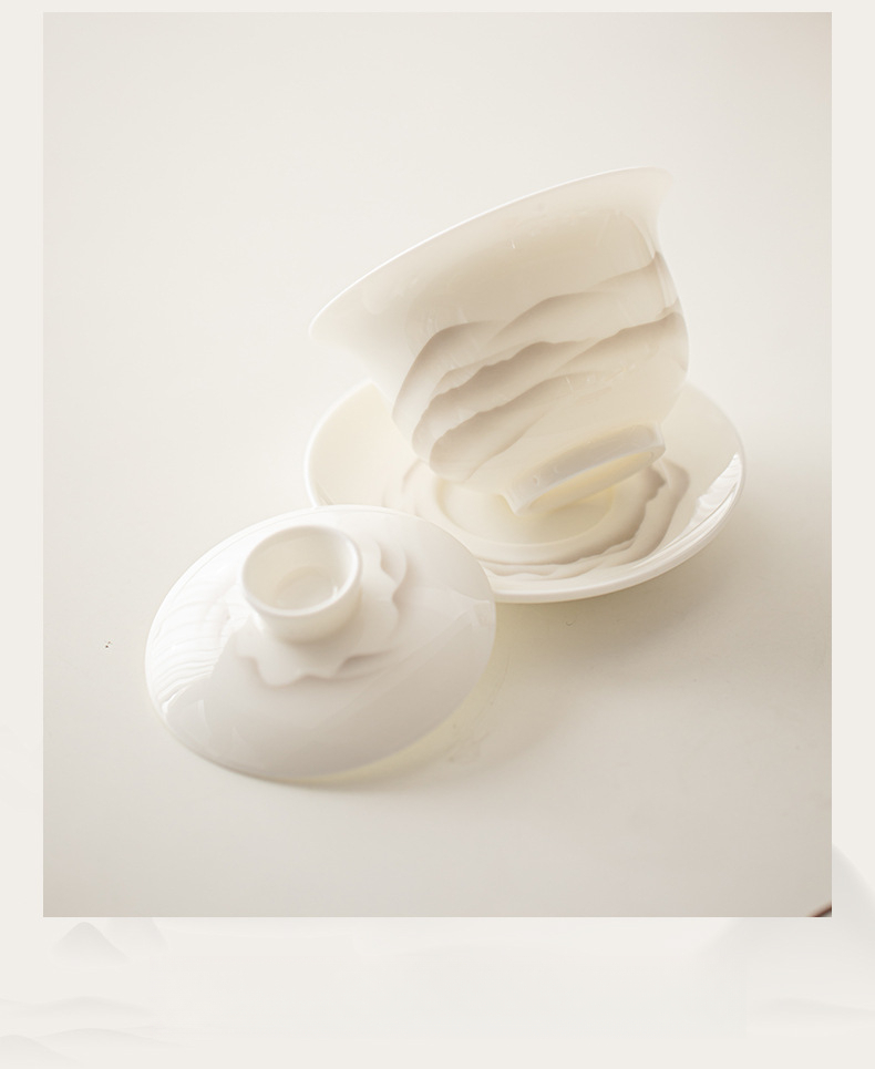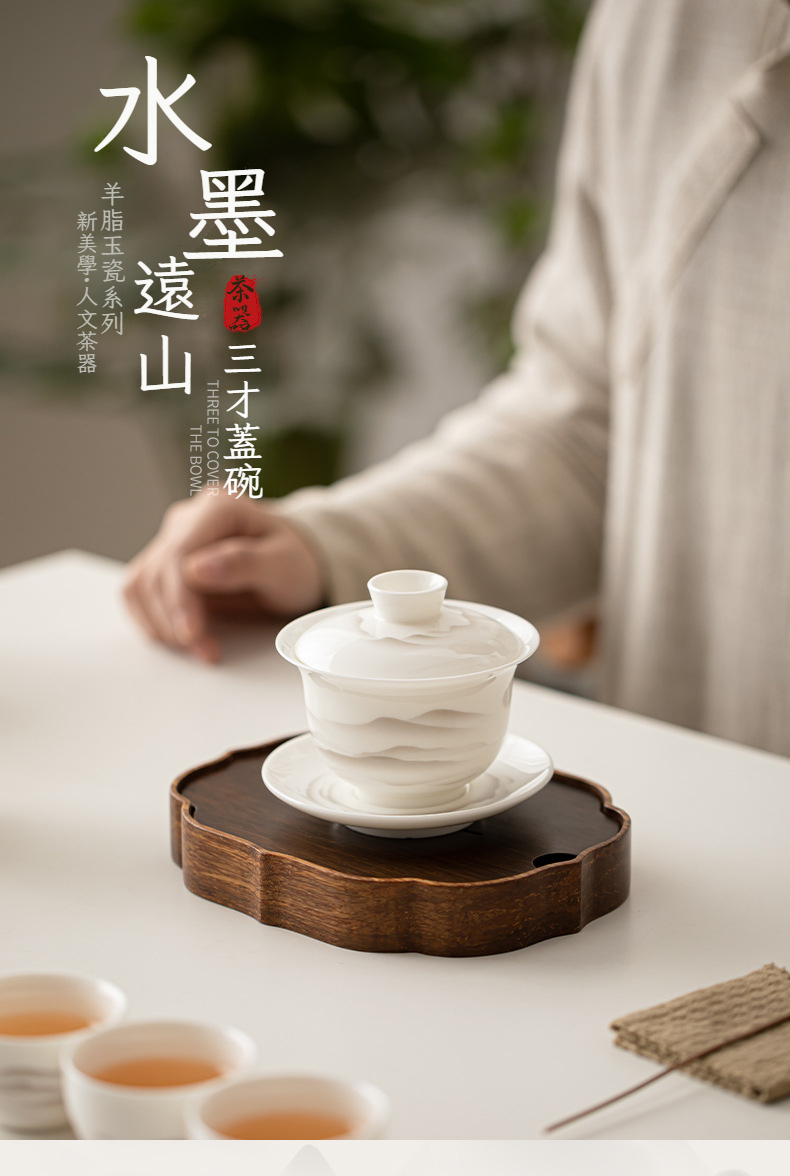 羊脂玉水墨遠山【圓滿三才蓋碗】