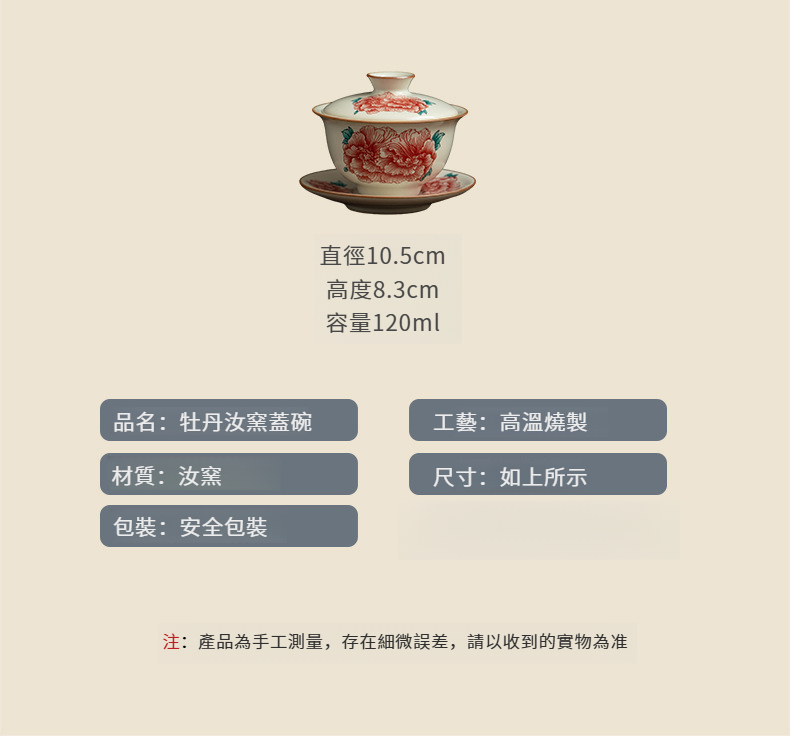 牡丹汝窯蓋碗