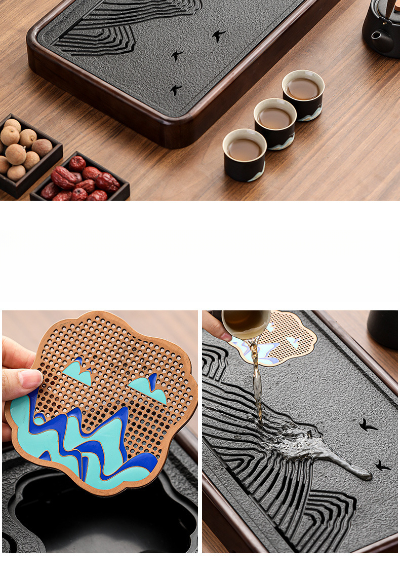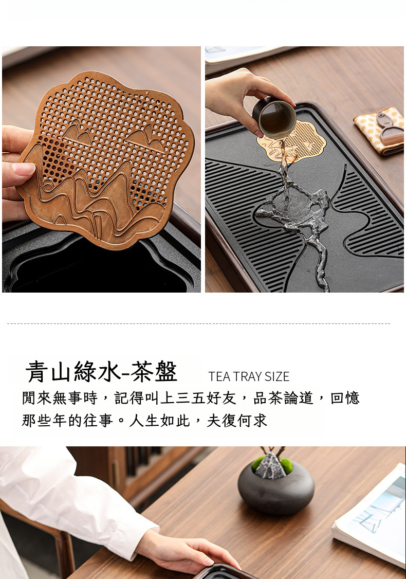 點彩實木青山綠水茶盤-中號