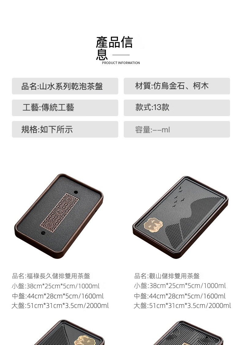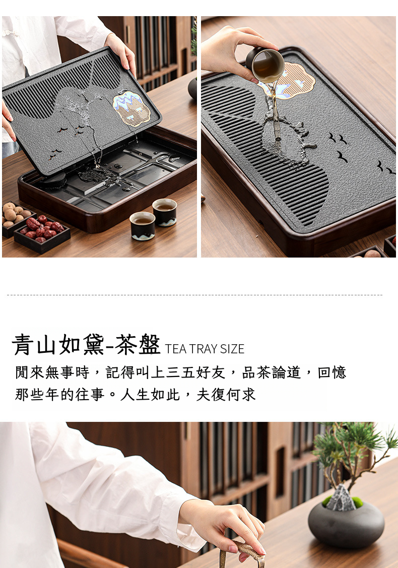 實木青山綠水儲排雙用盤-中號