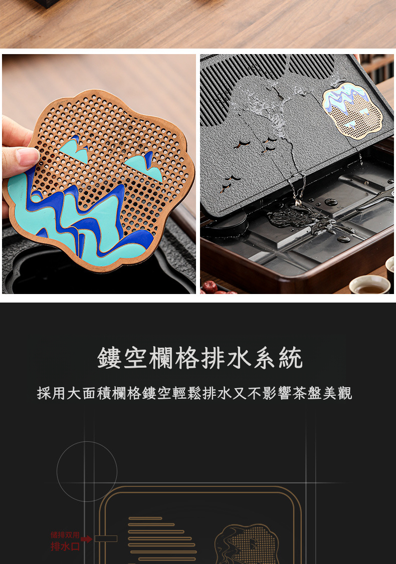 點彩實木千里江山茶盤-中號