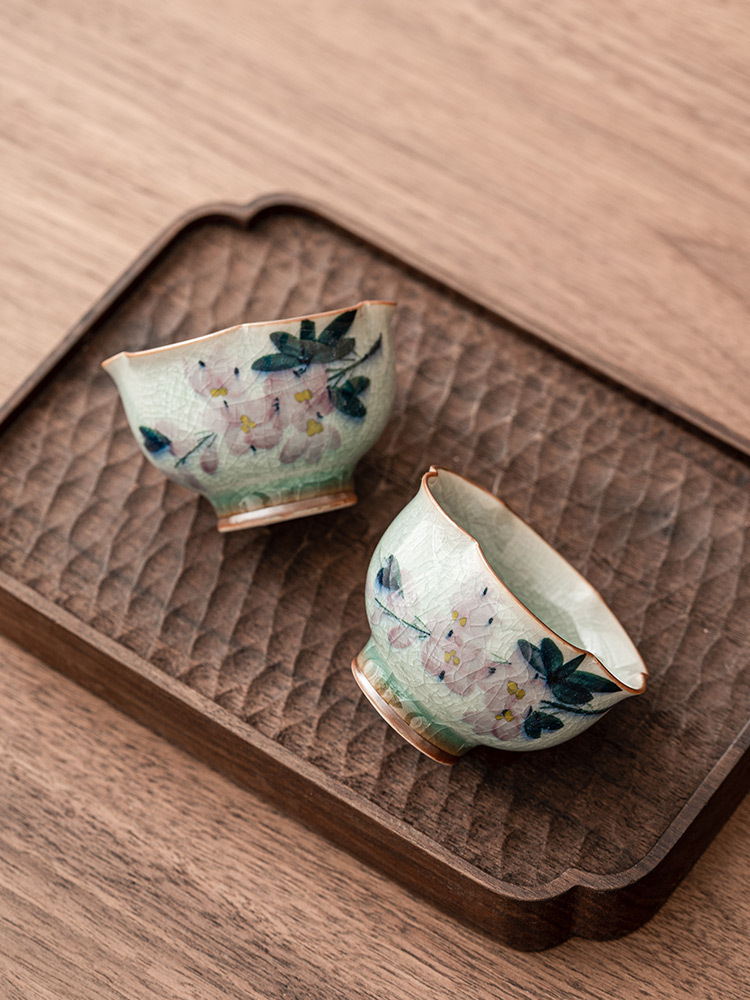 冰花手繪玉蘭花茶杯主人杯