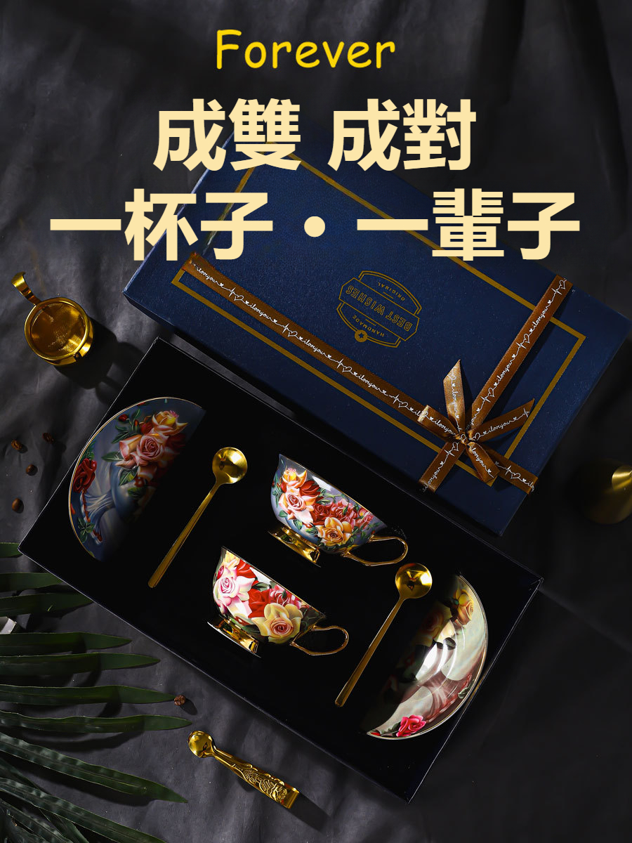 玫瑰歐式骨瓷咖啡杯杯碟套裝