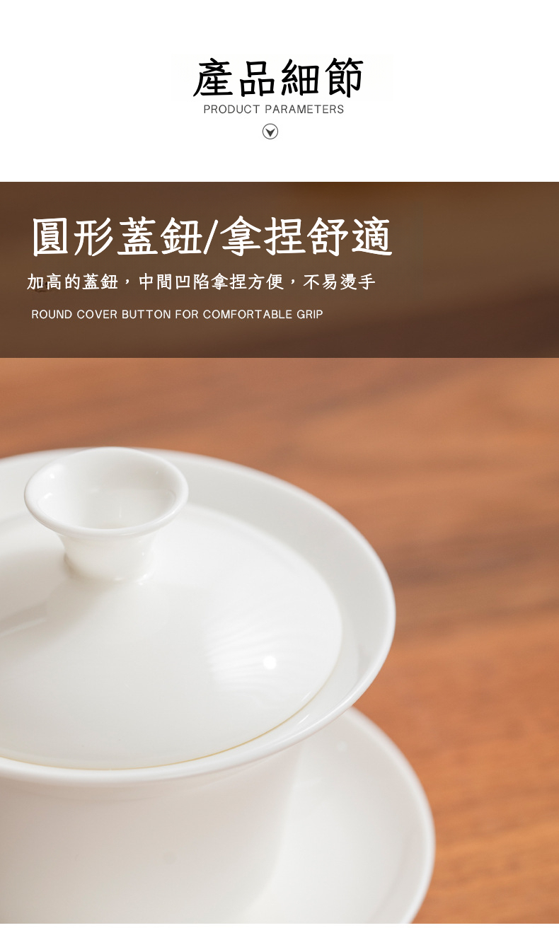 羊脂玉白瓷3頭「蓋碗-反口杯」