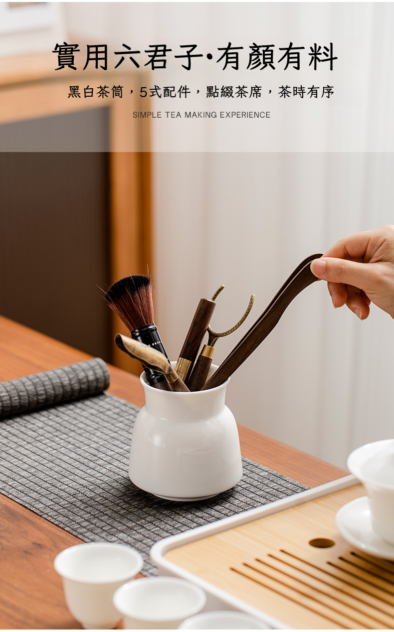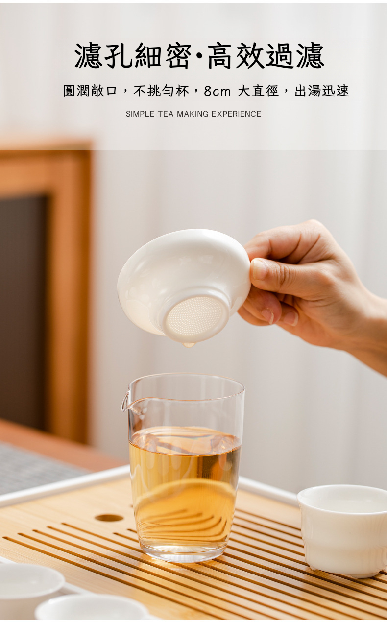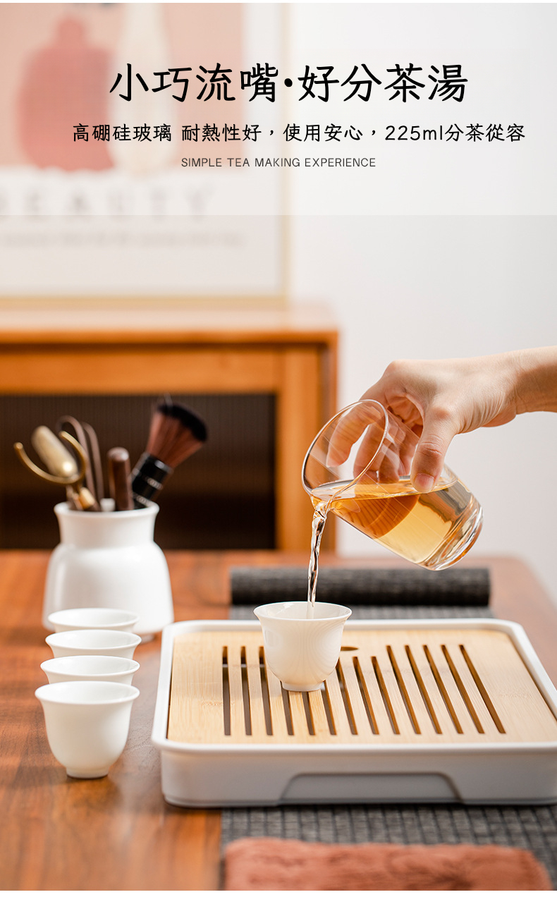 羊脂玉白瓷9頭茶具套裝「平口杯款」帶茶盤