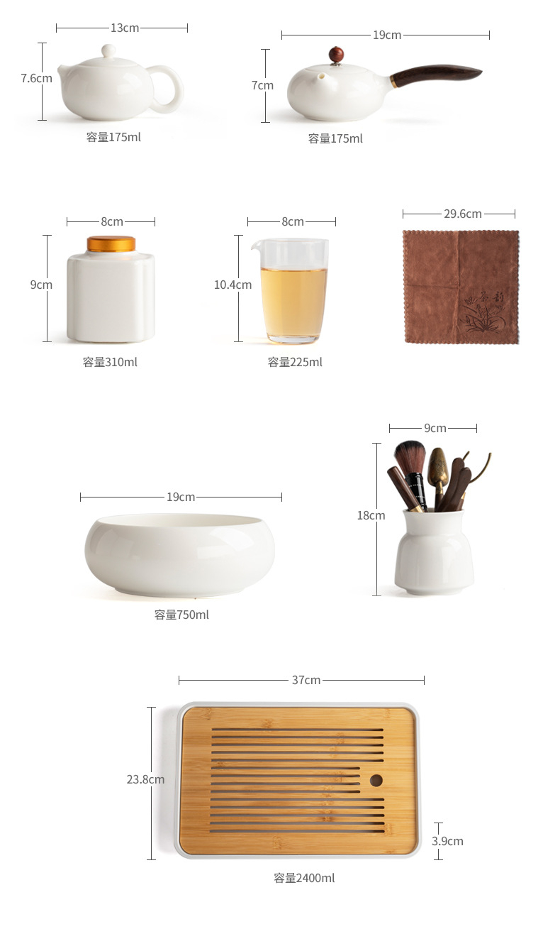 羊脂玉白瓷13頭茶具套裝「反口杯款」帶茶盤