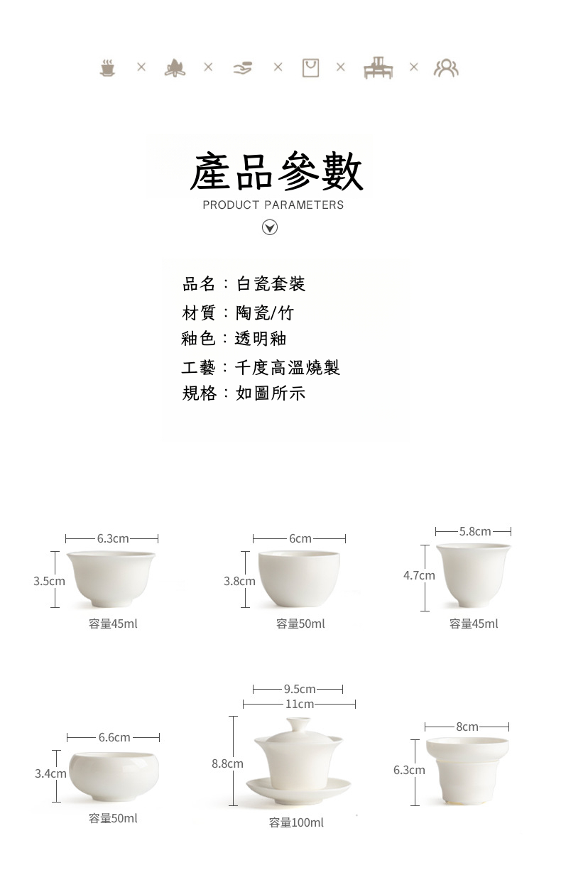 羊脂玉白瓷茶具套裝