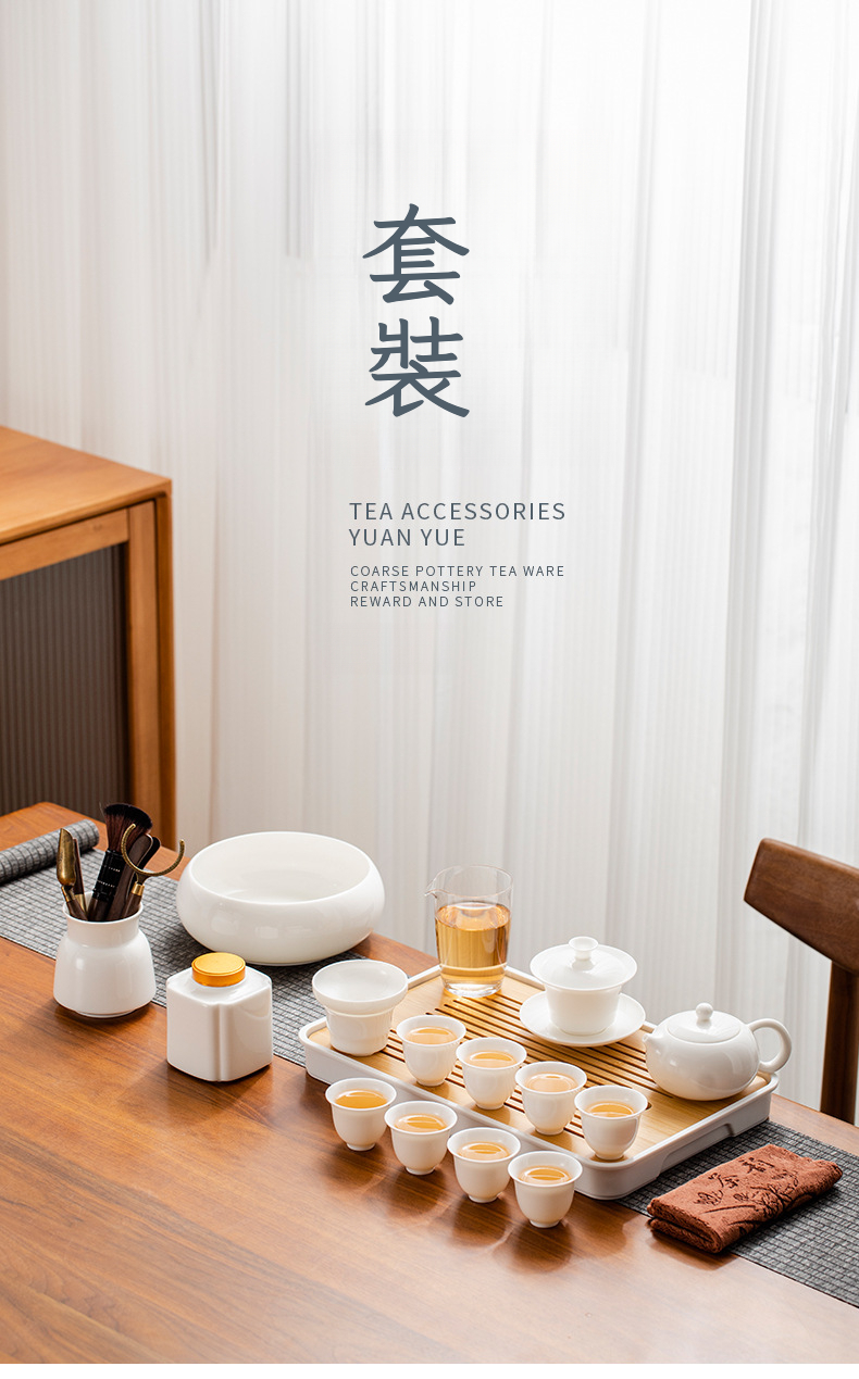 羊脂玉白瓷10頭茶具套裝「反口杯款」帶茶盤