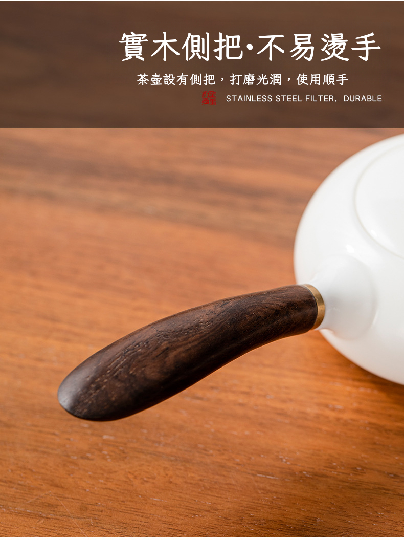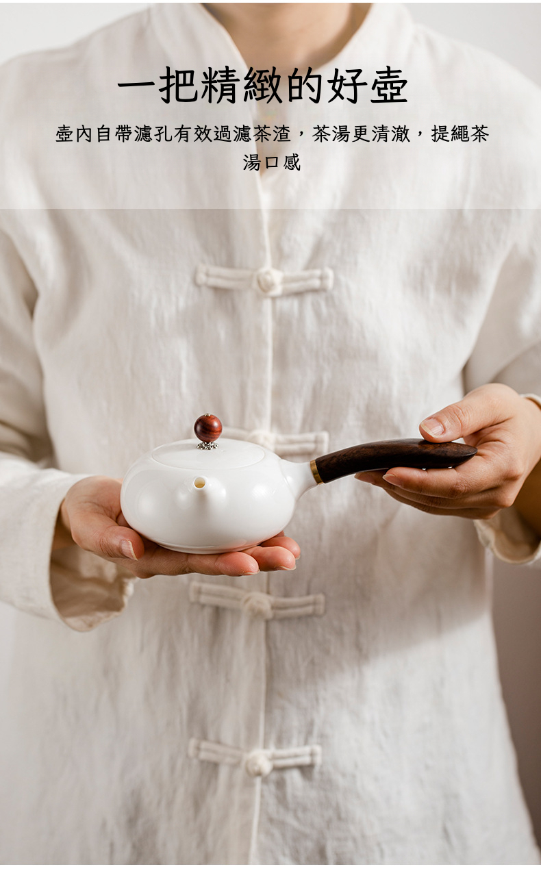 羊脂玉白瓷3頭「側把壺-反口杯」