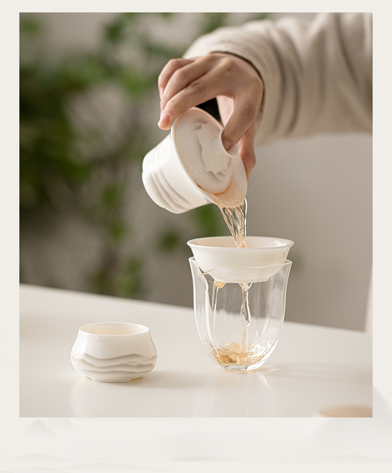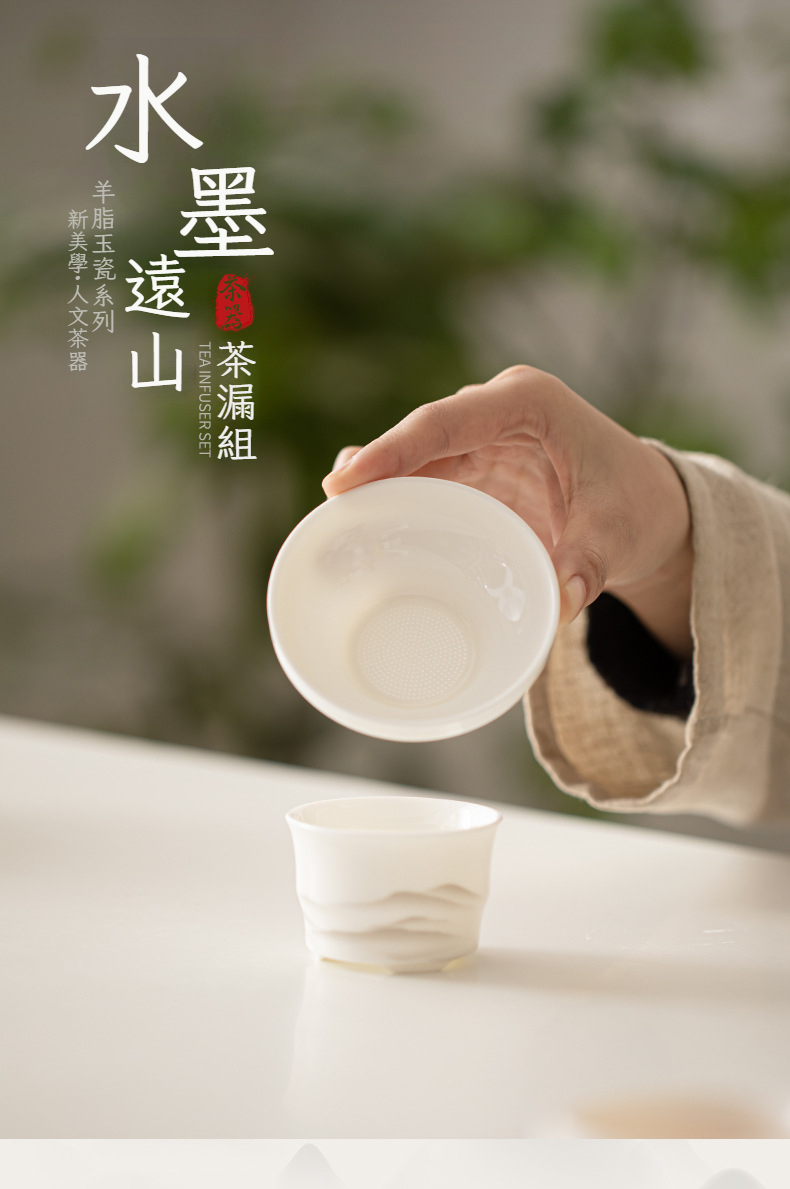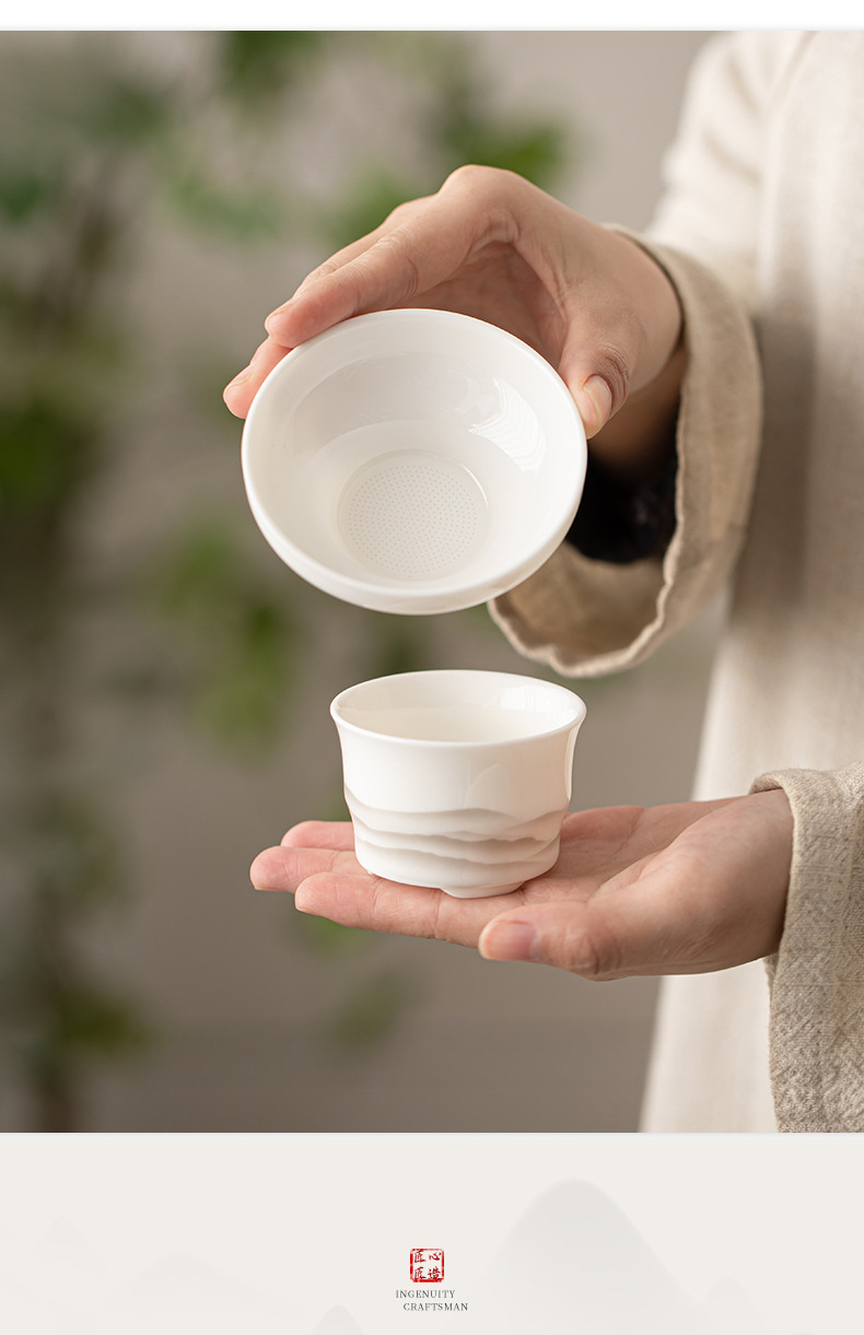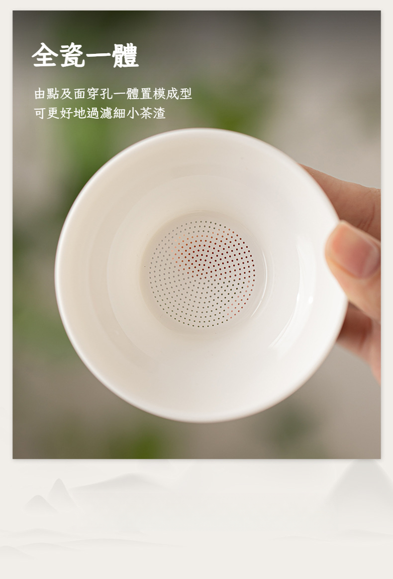 羊脂玉白瓷茶漏全瓷茶水分離器