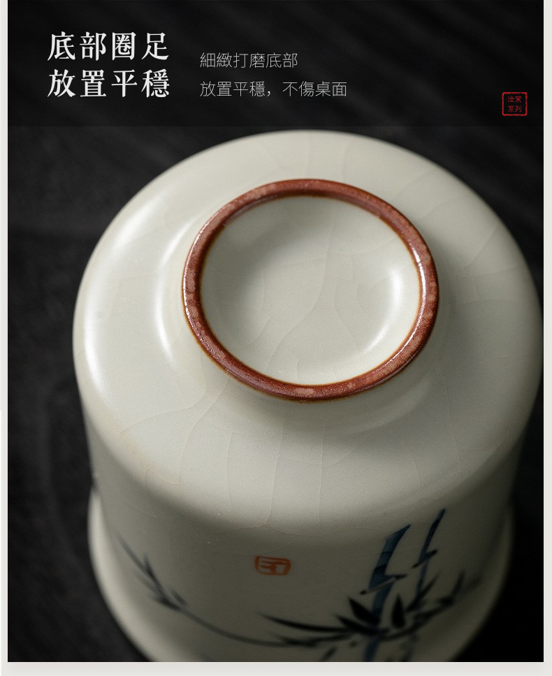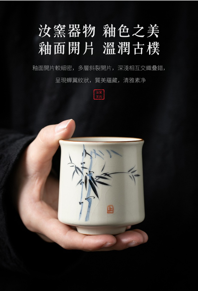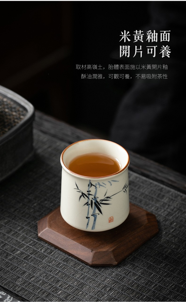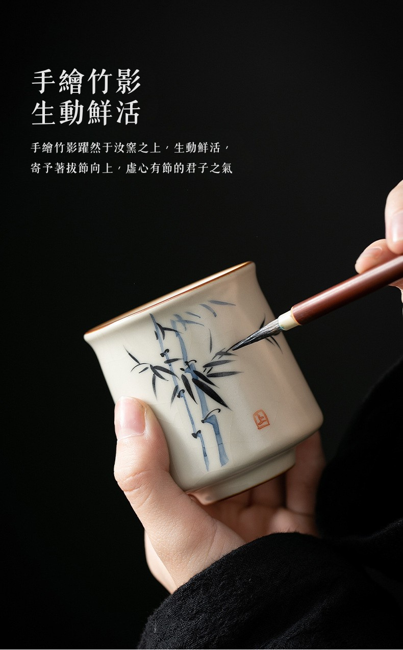 米黃汝窯手繪竹影-君逸杯