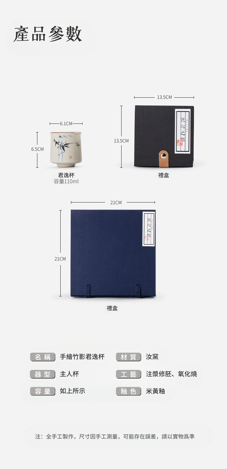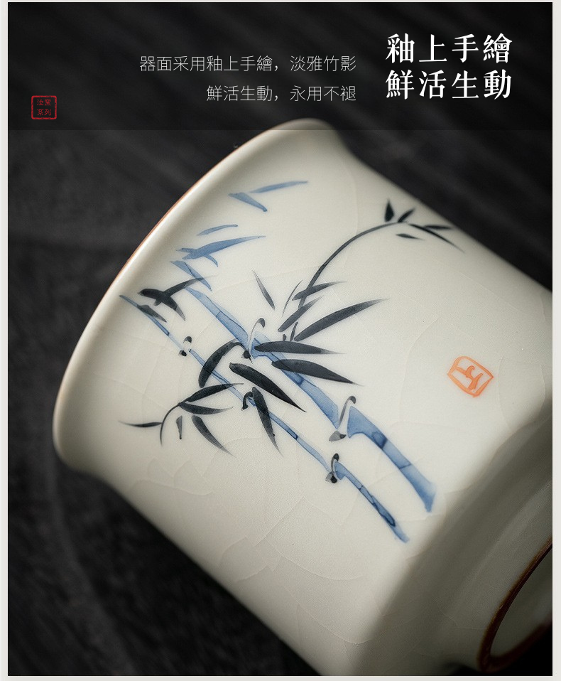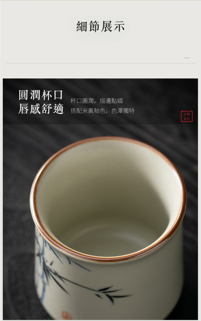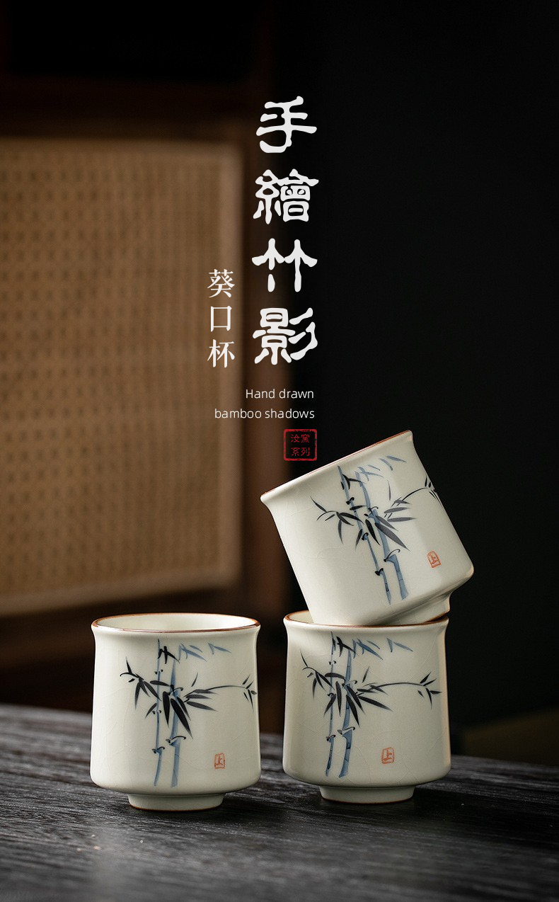 米黃汝窯手繪竹影-君逸杯