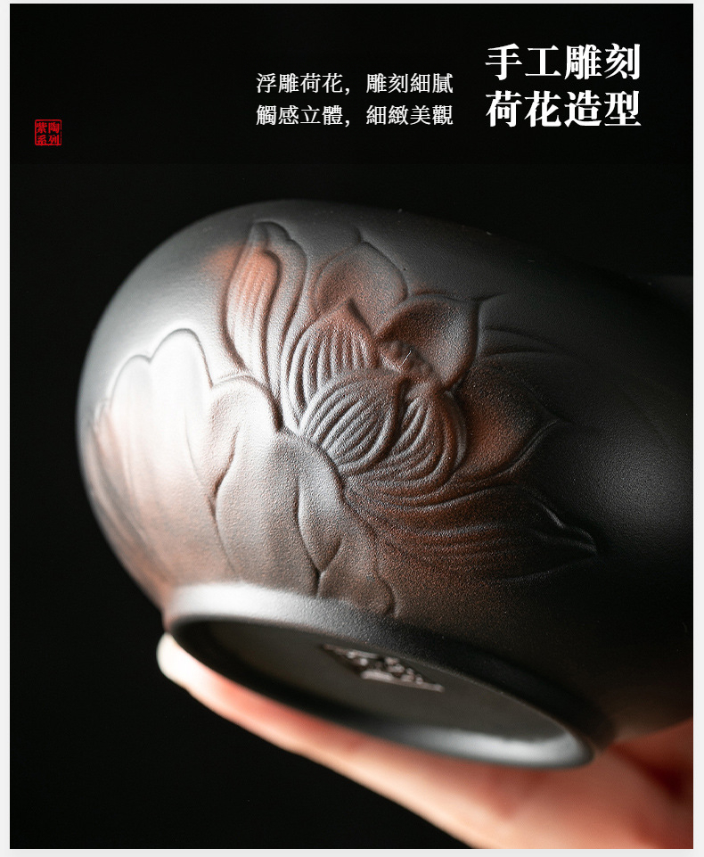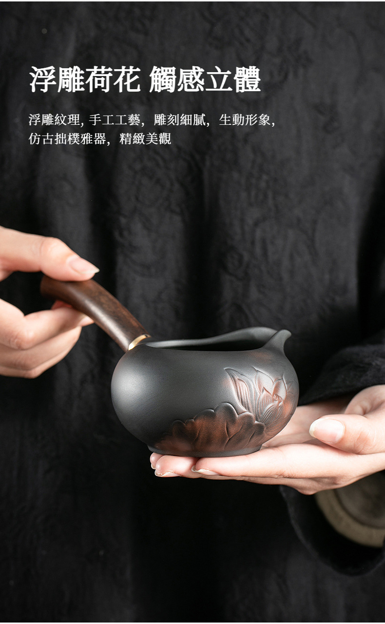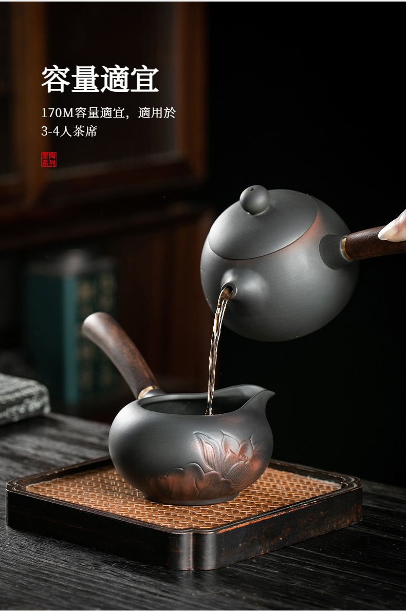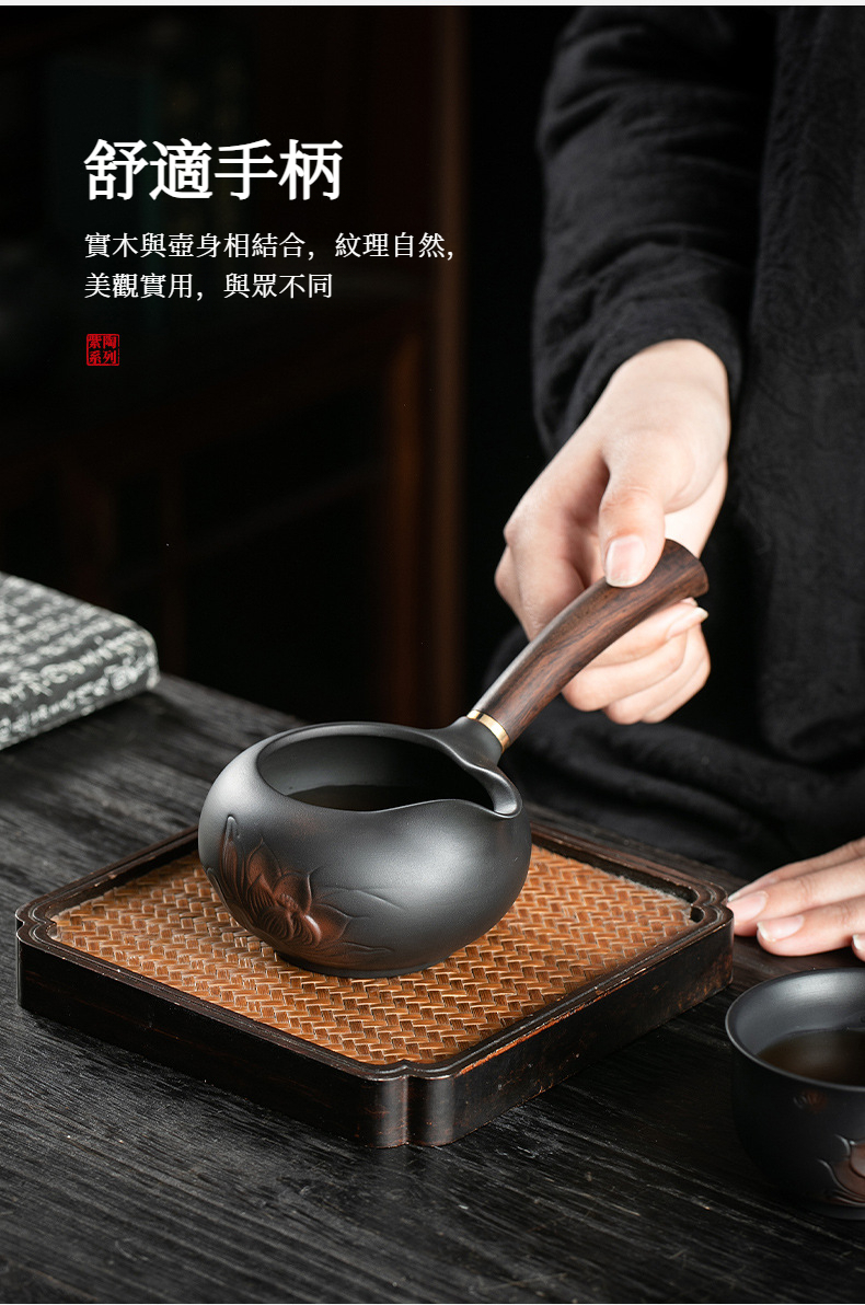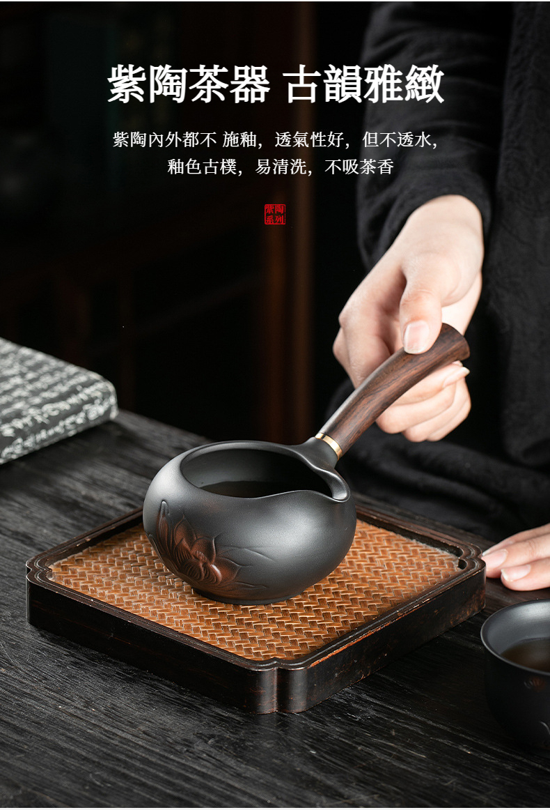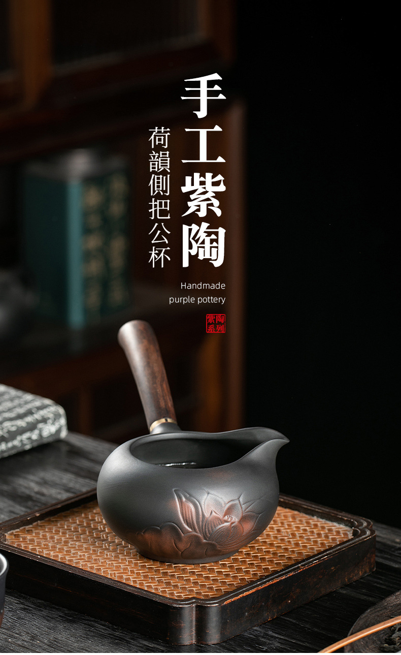 紫陶荷韵側把公道杯