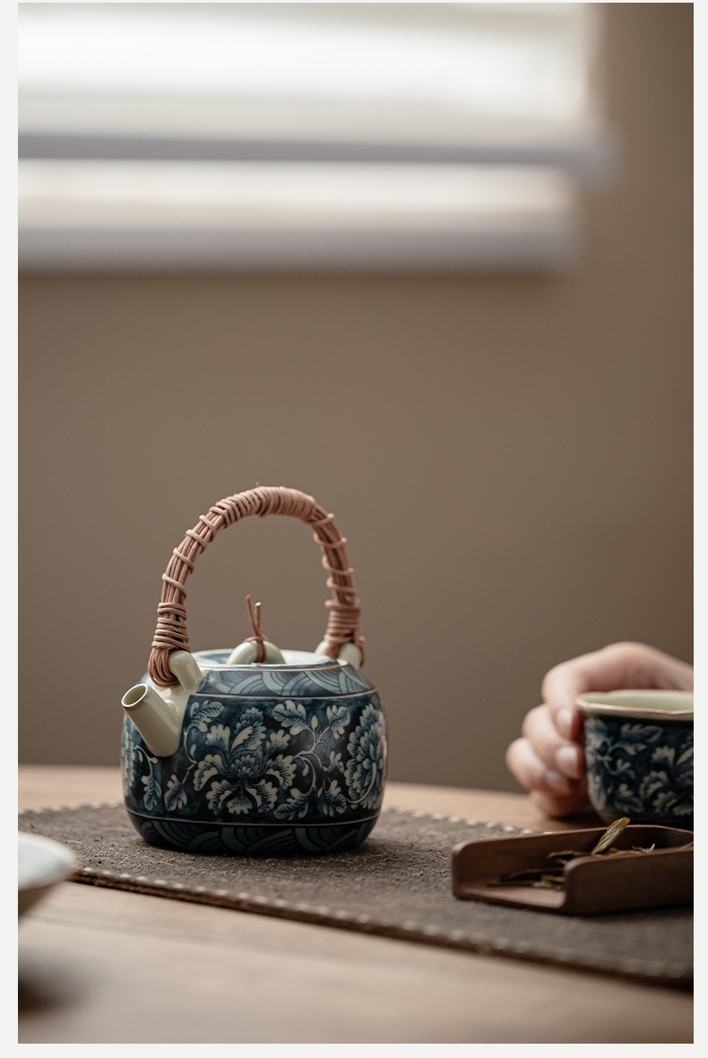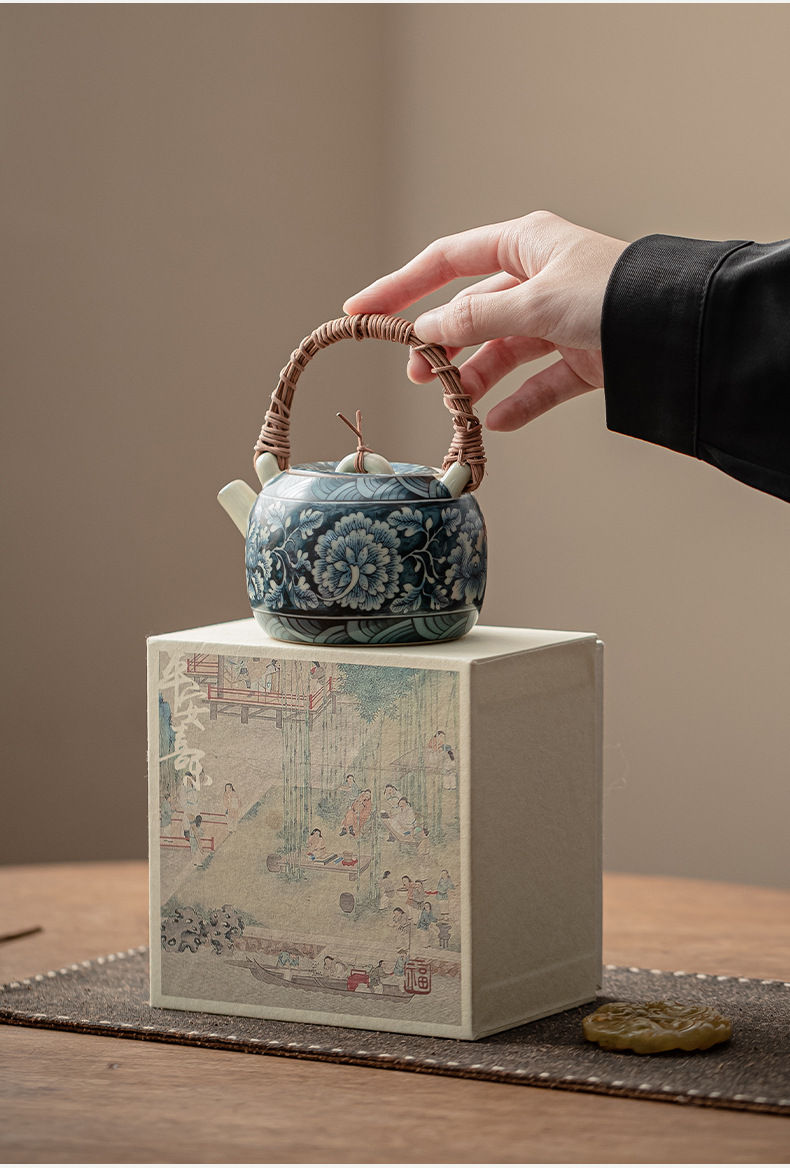 繁花-藤編提梁壺