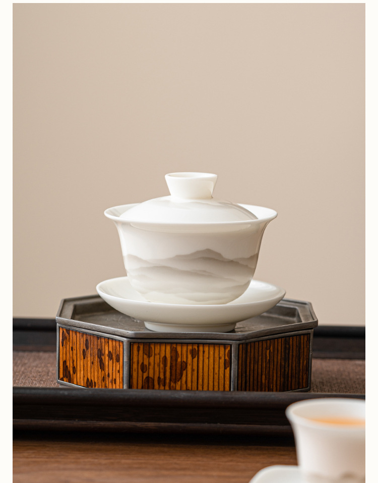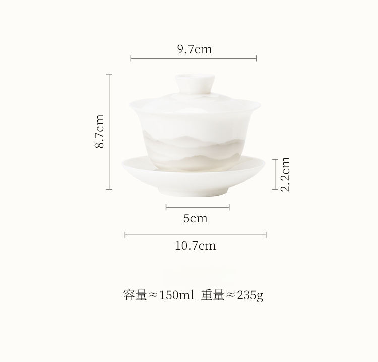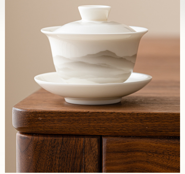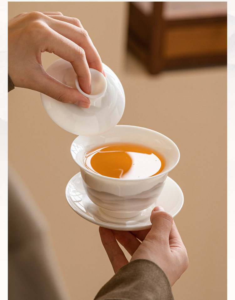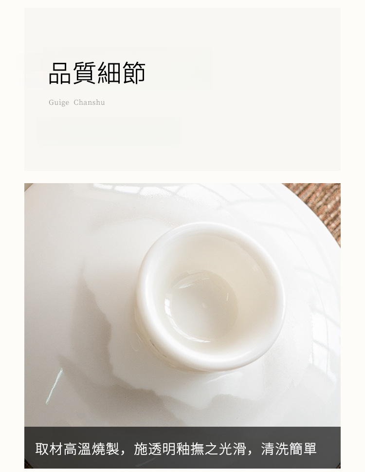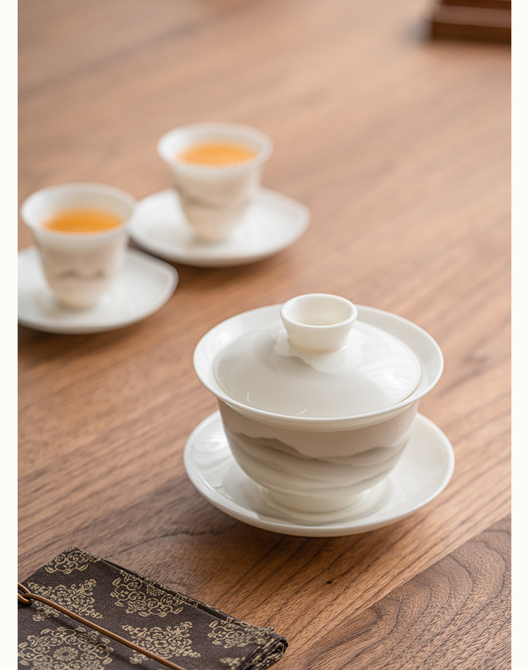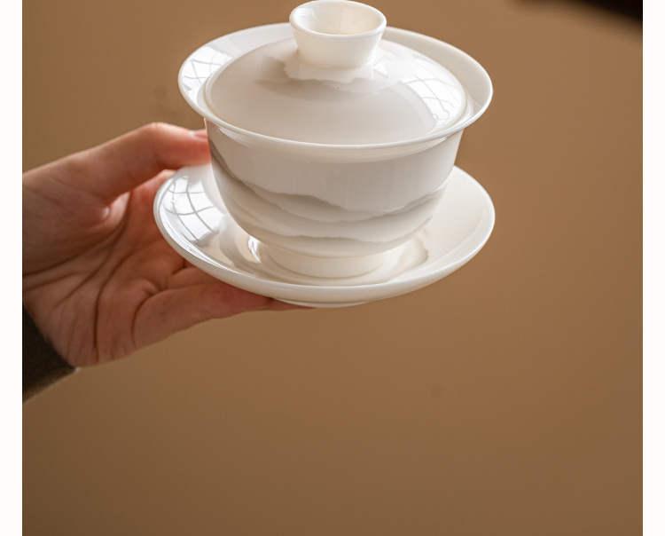 羊脂玉蓋碗功夫茶具泡茶碗