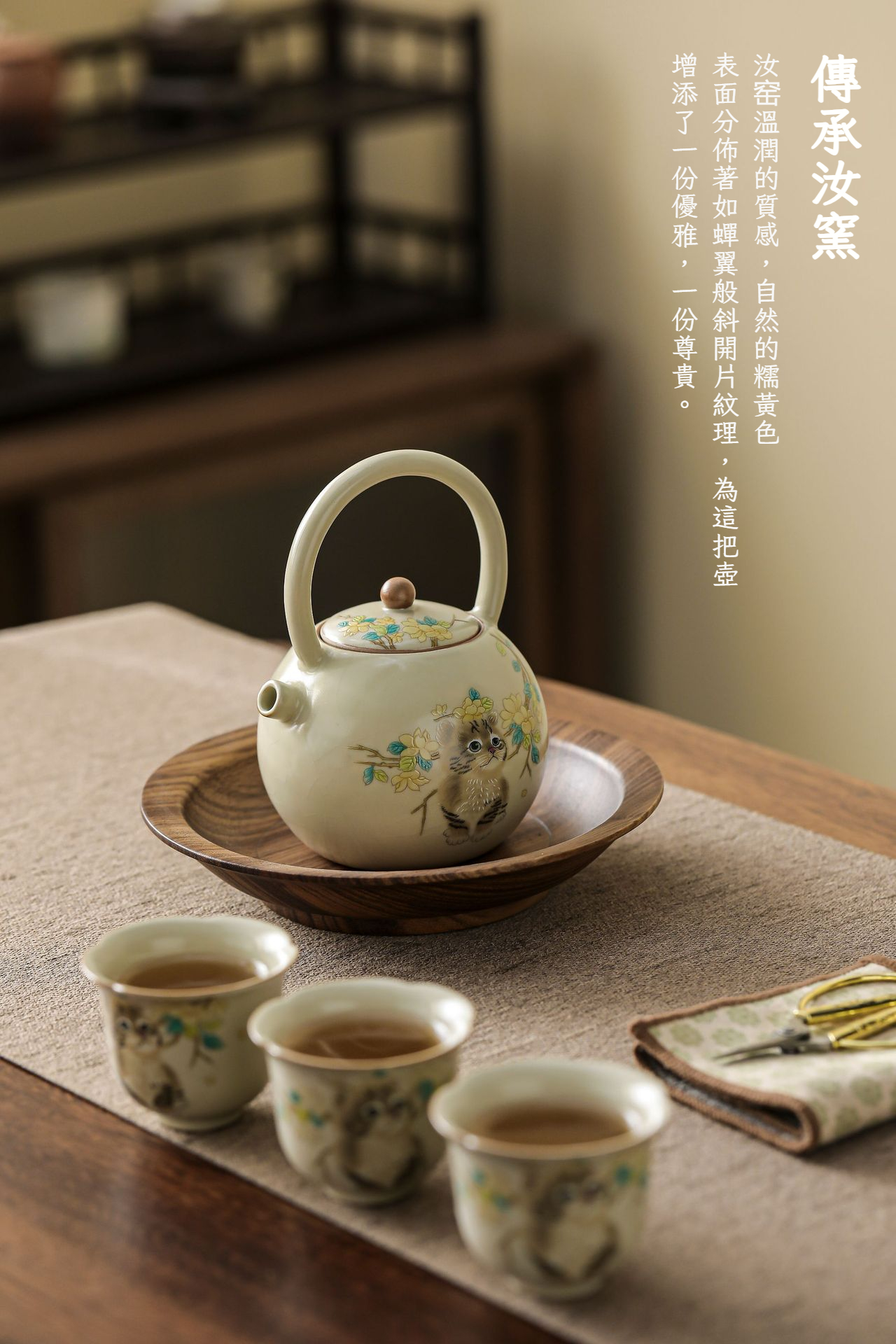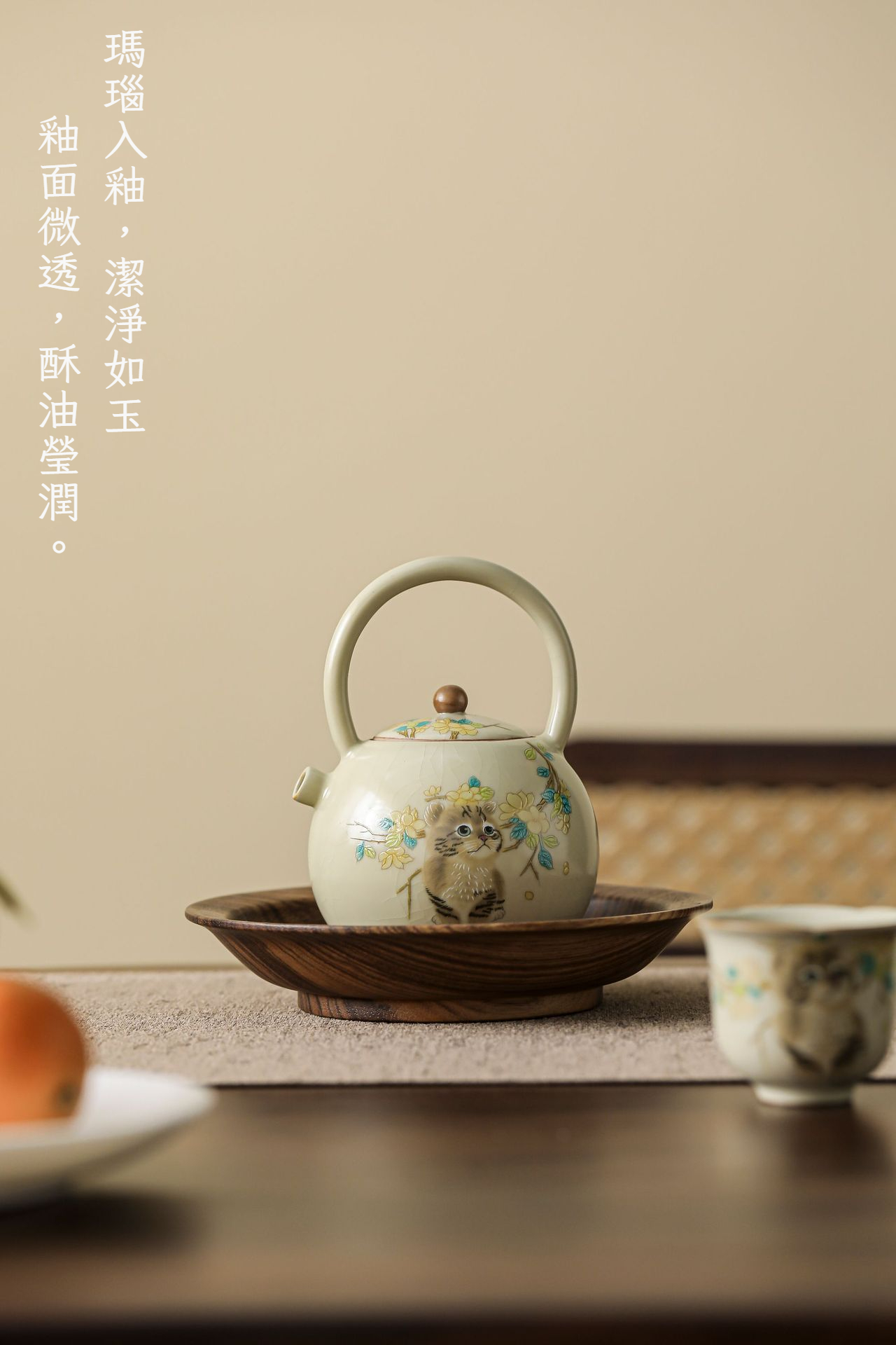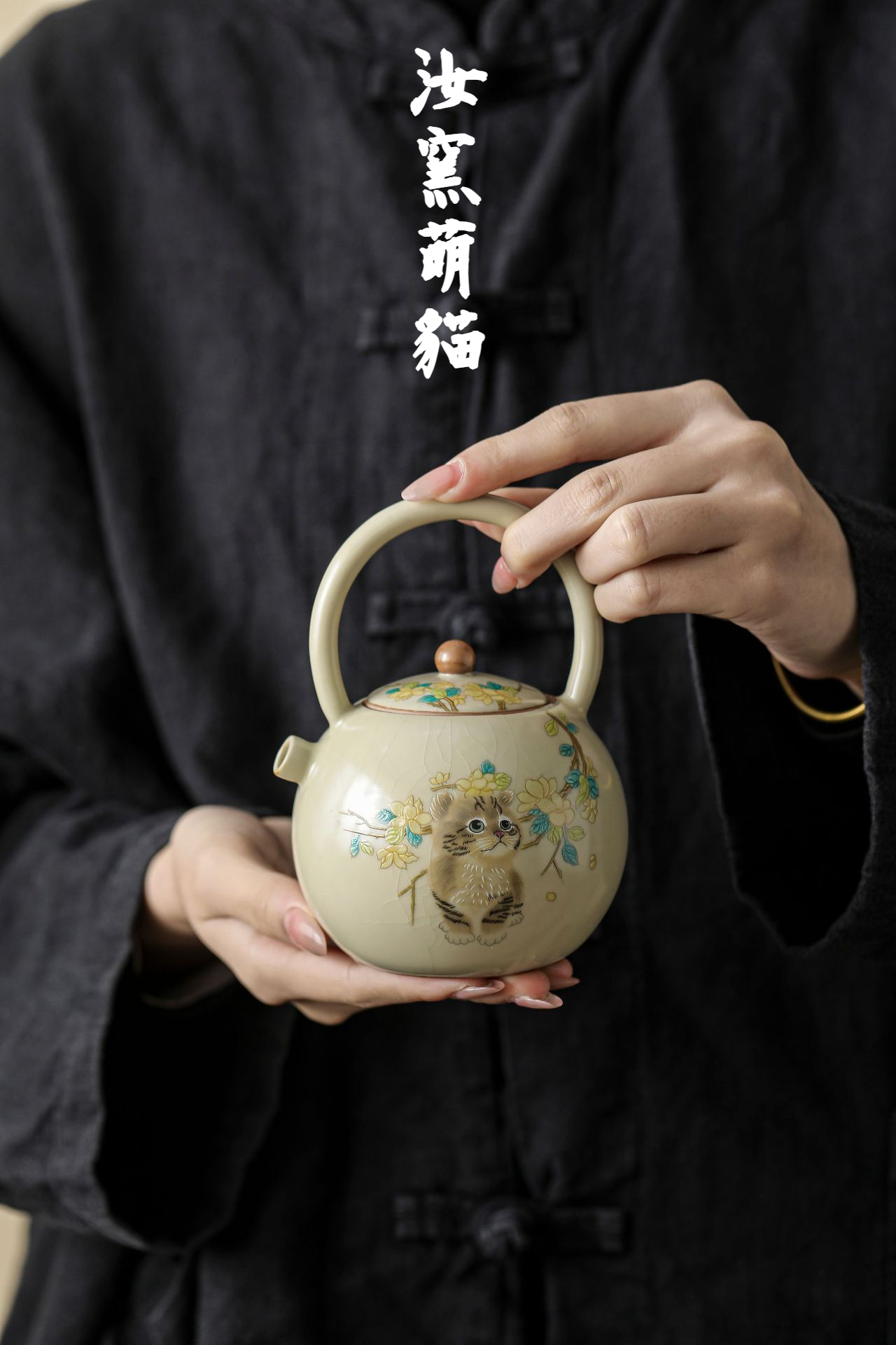汝窯萌貓瓷把提梁壺