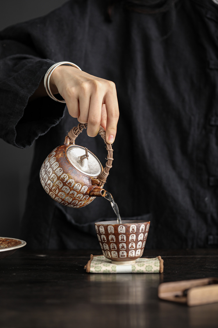 萬佛復古蟬翼藤編提梁壺