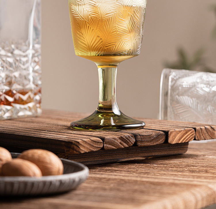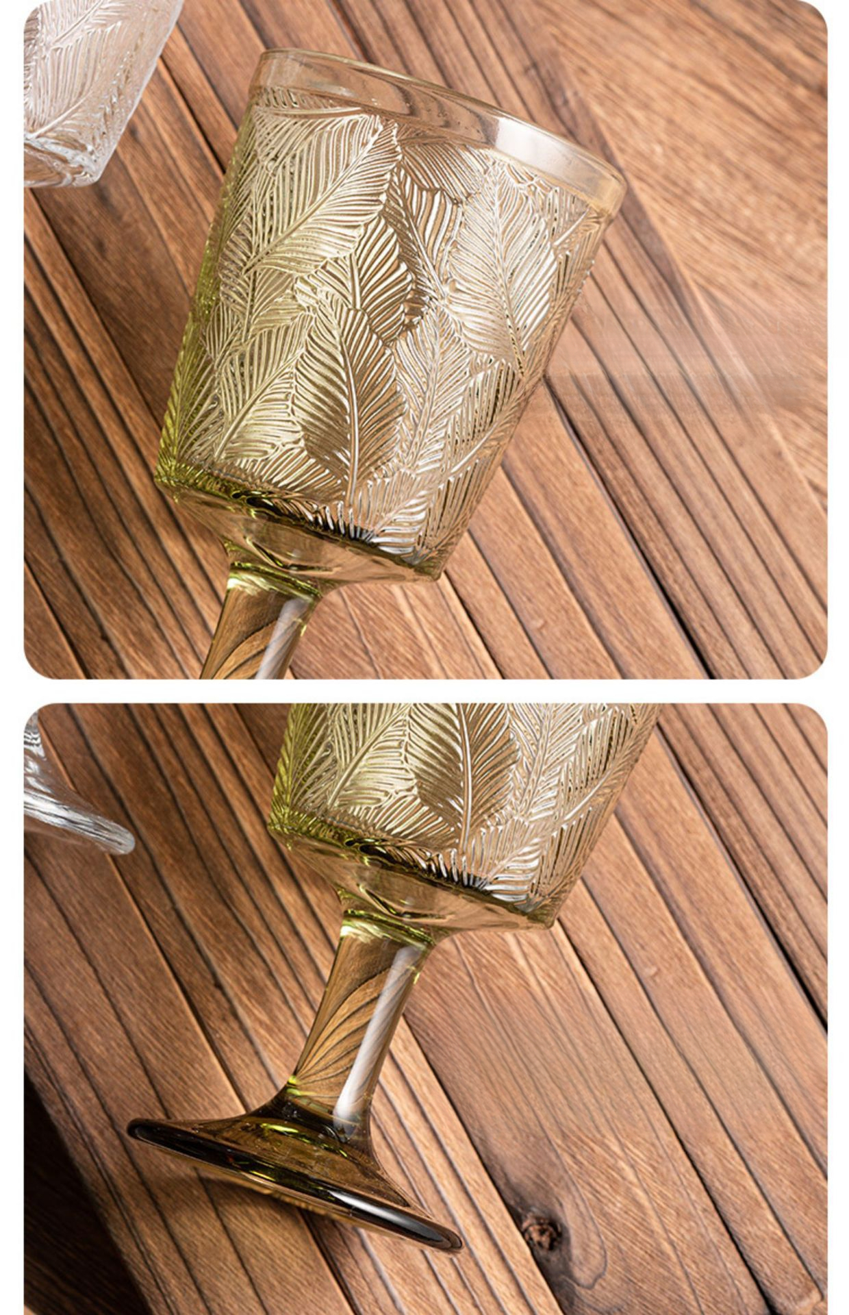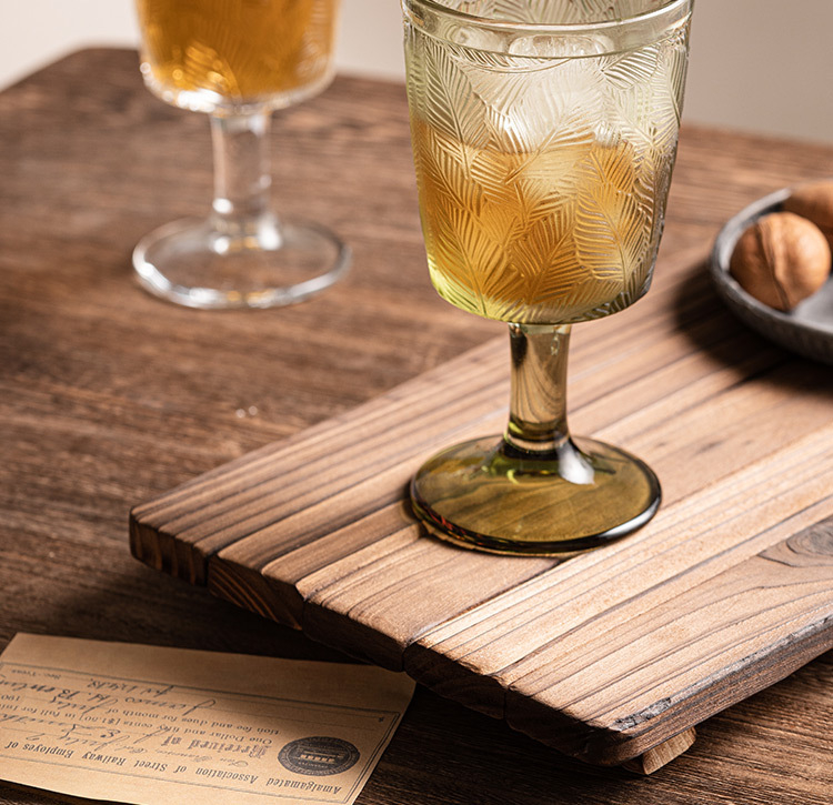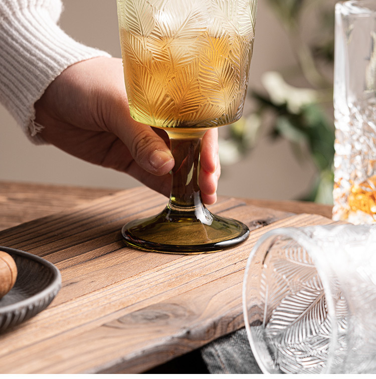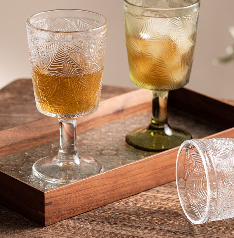 立體葉紋復古浮雕高腳杯