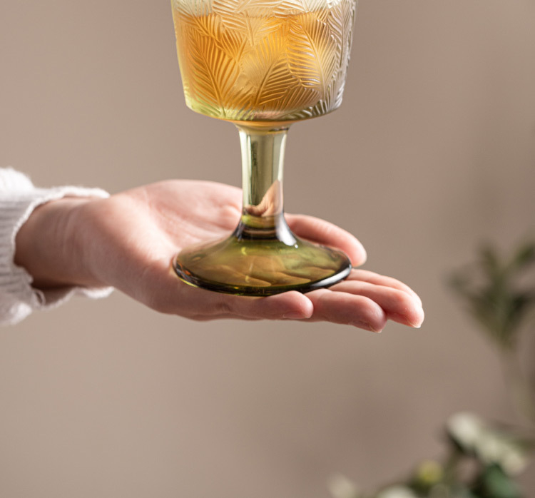 葉紋高腳杯-復古綠