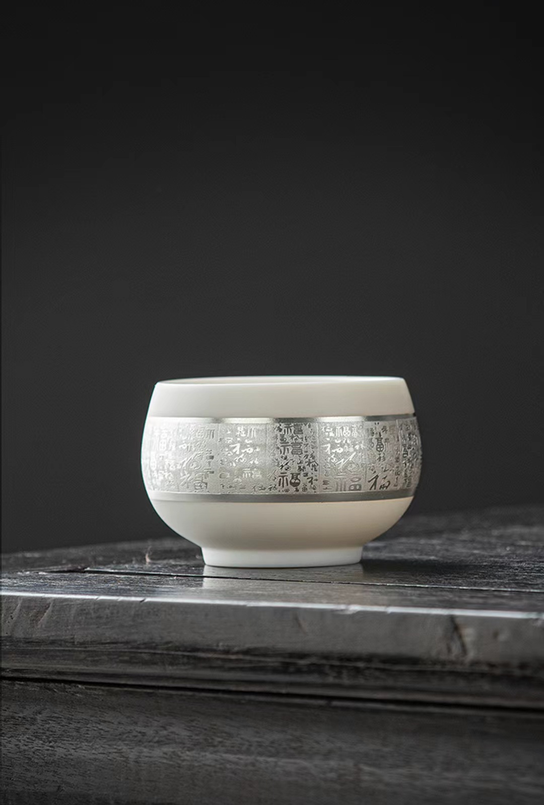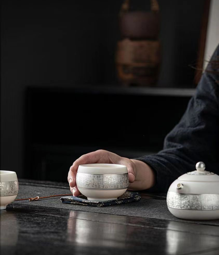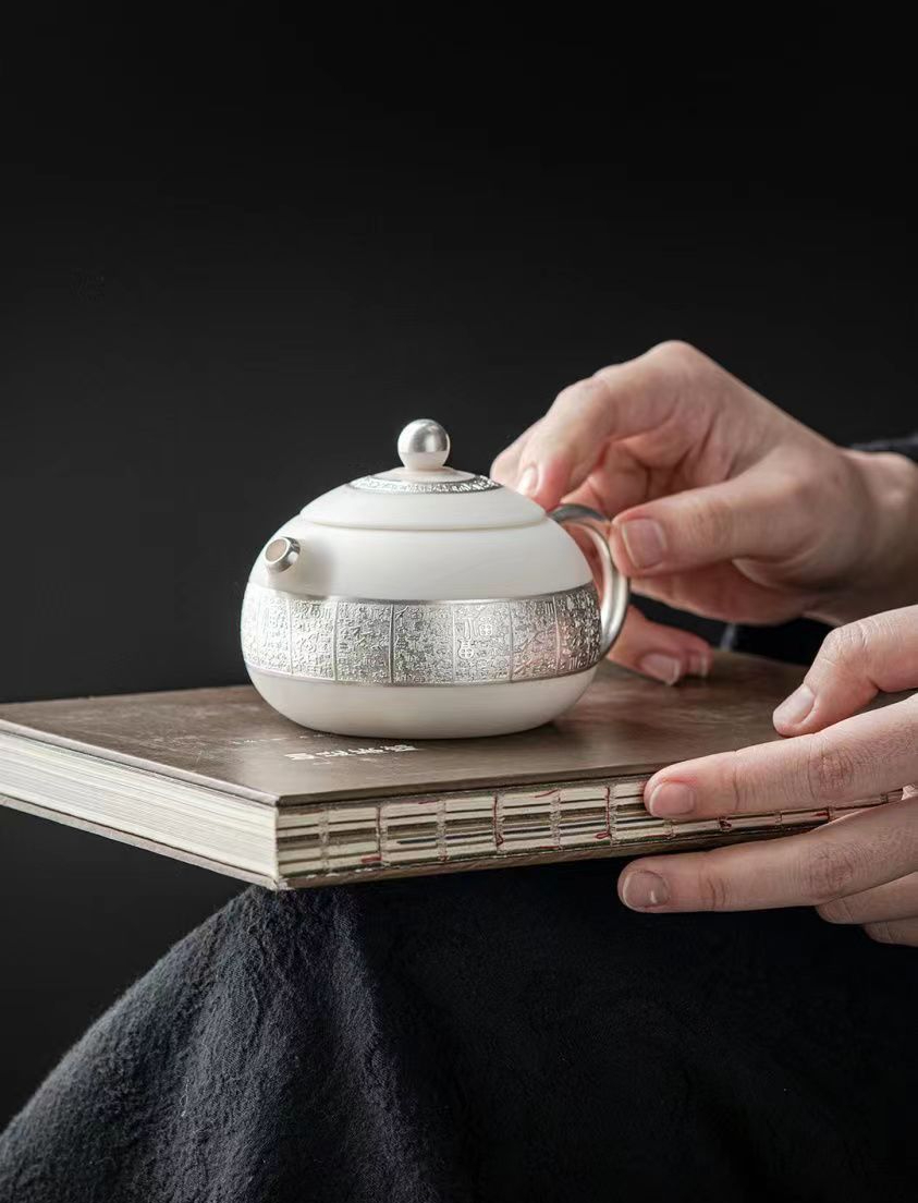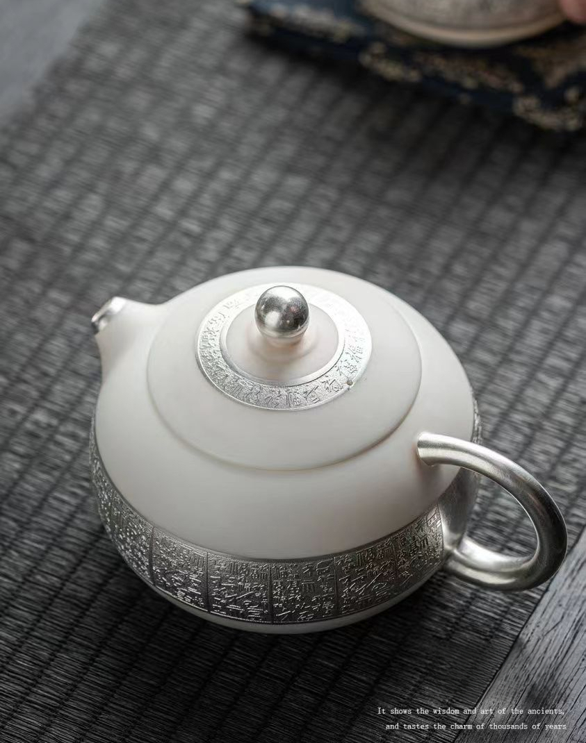 羊脂玉鎏銀百福西施壺主人杯