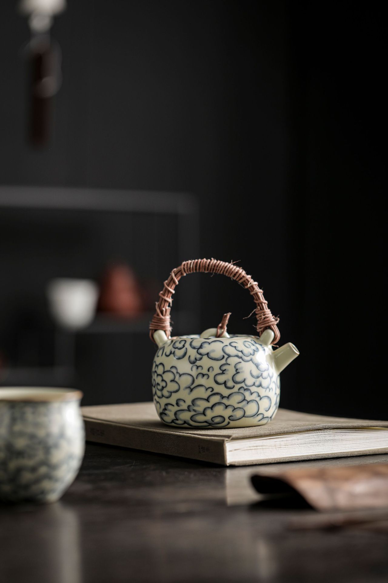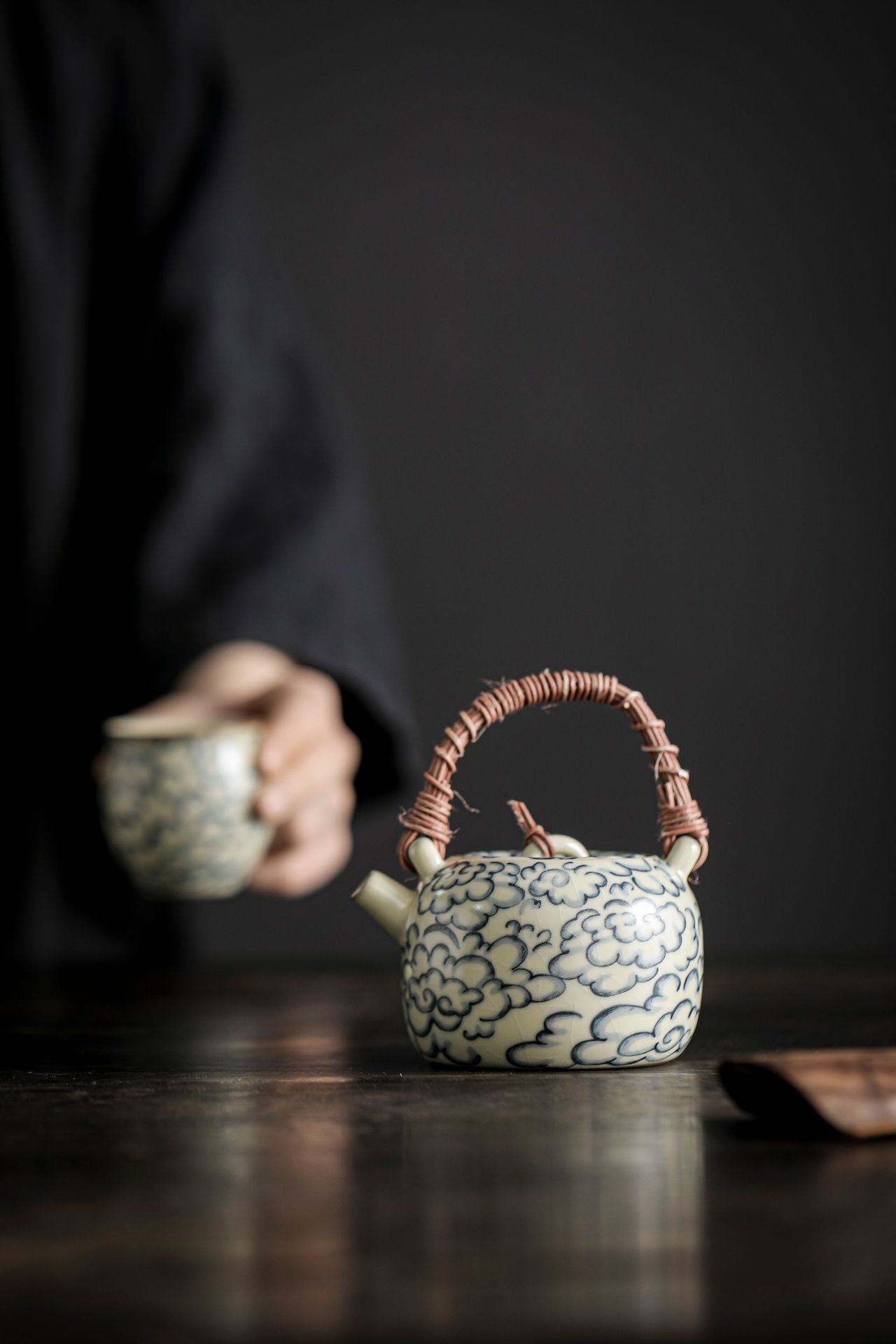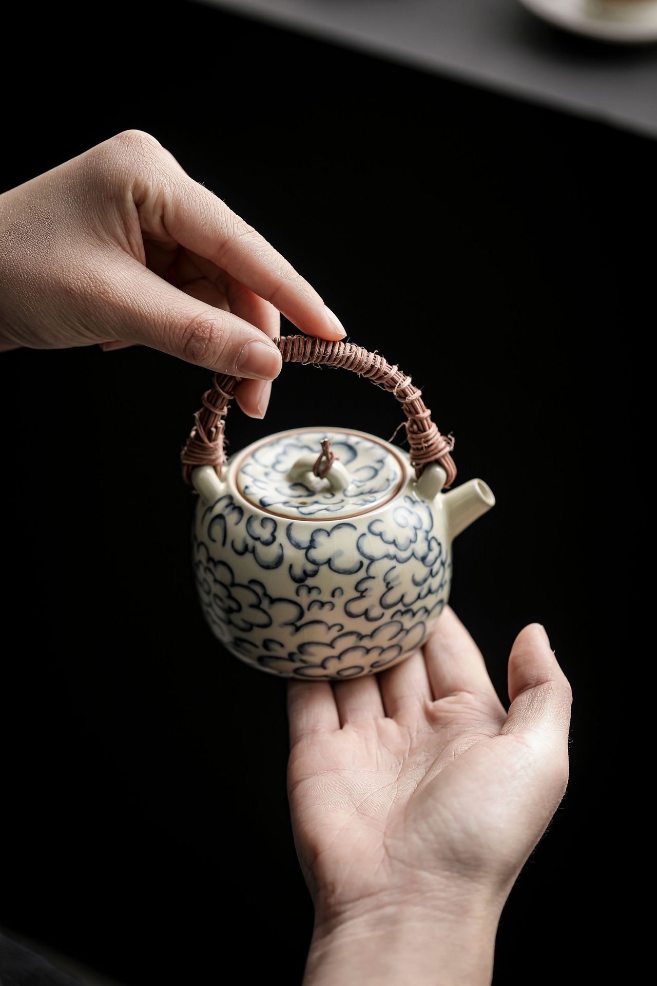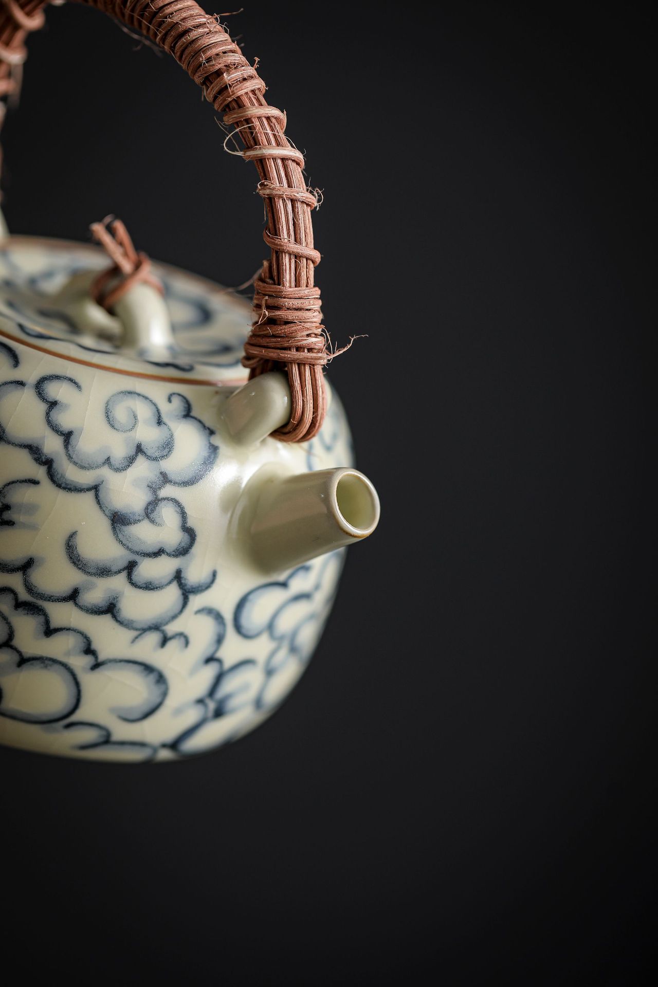 汝窯祥雲復古青花提梁壺