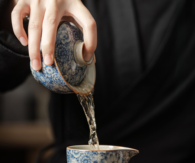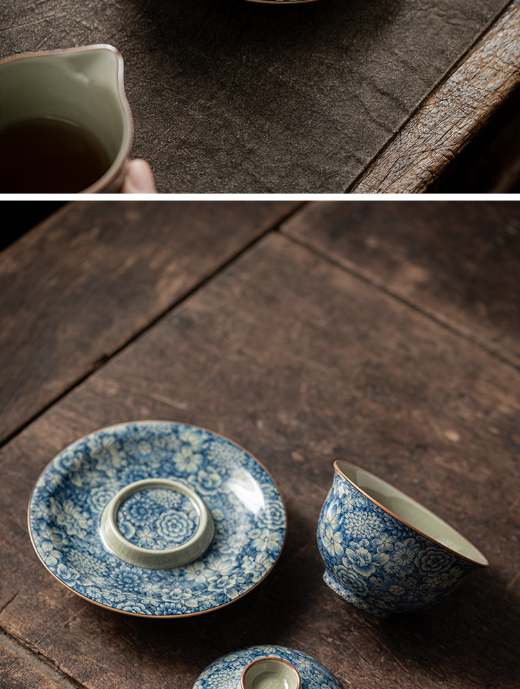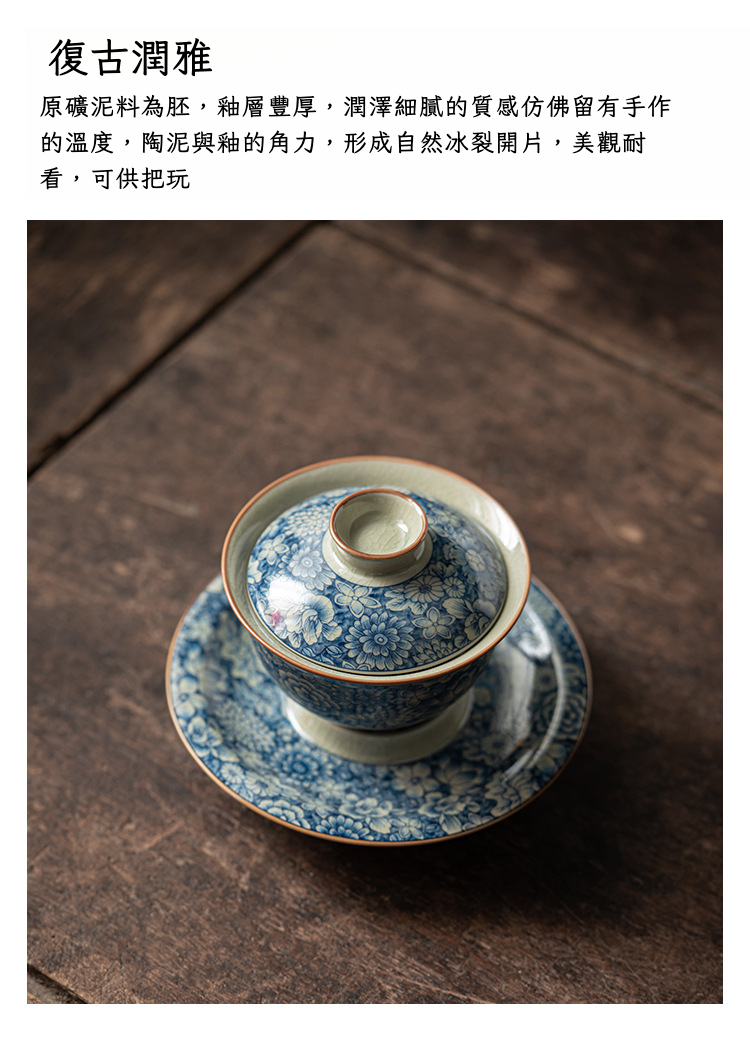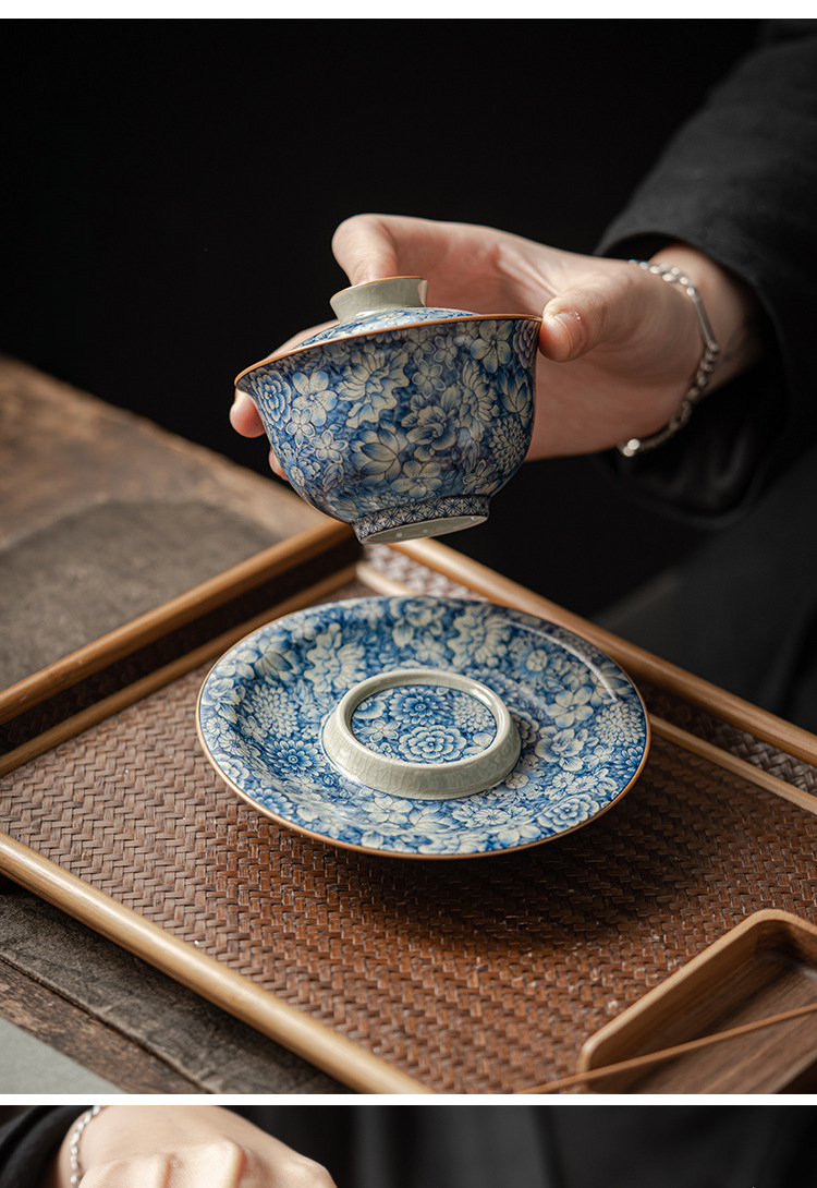 淺墨復古青花蓋碗+壺承組合