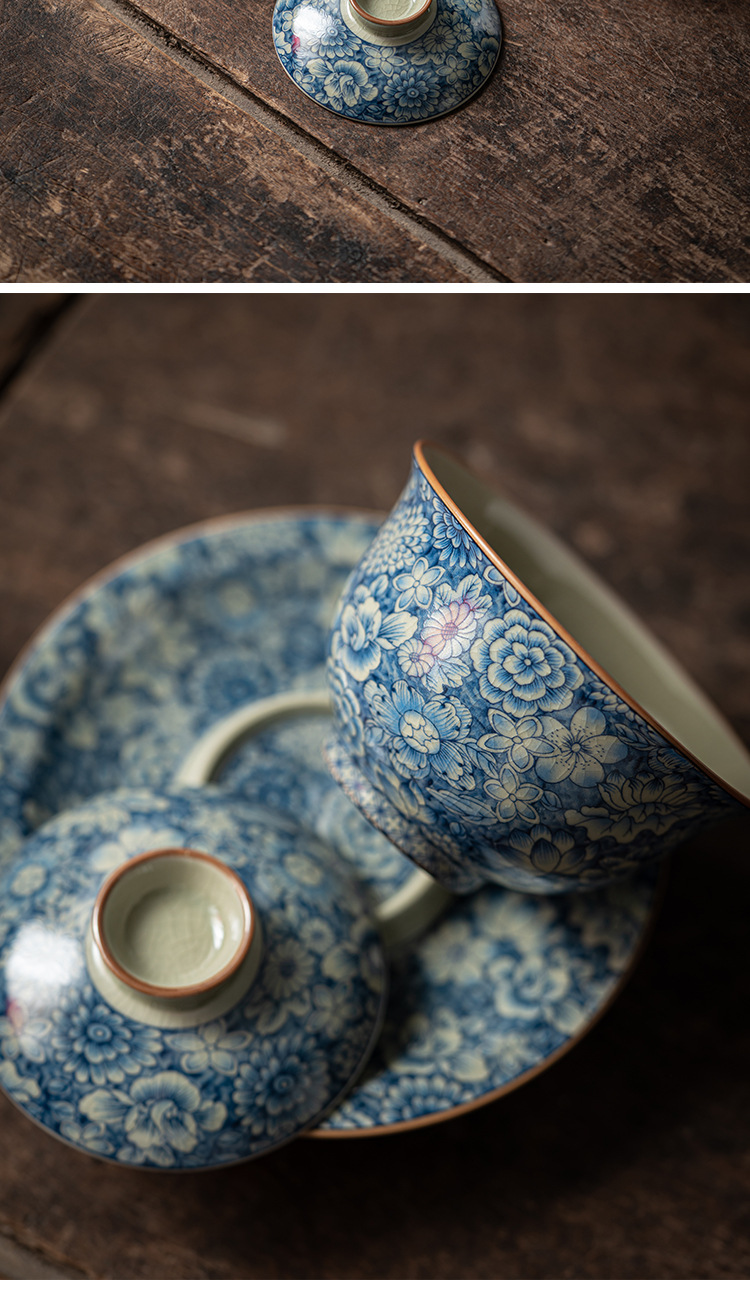 淺墨復古青花三才蓋碗