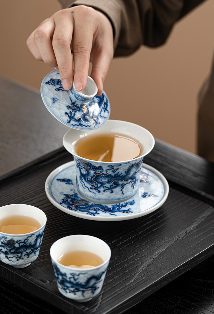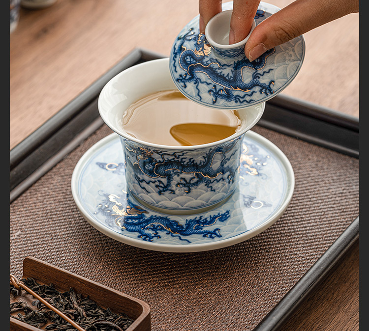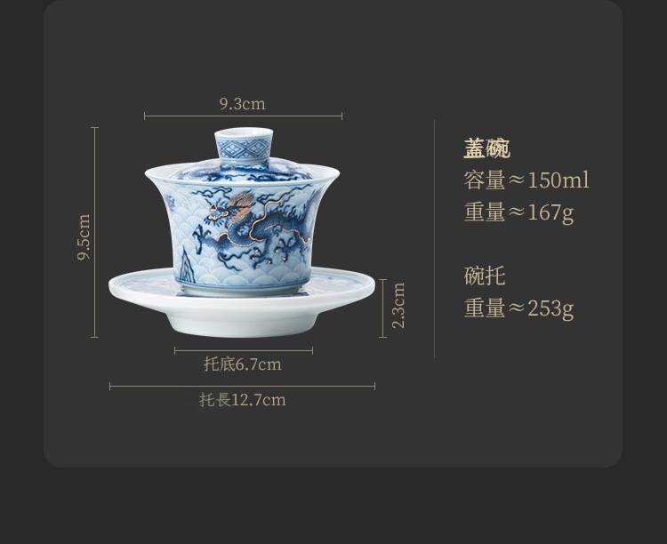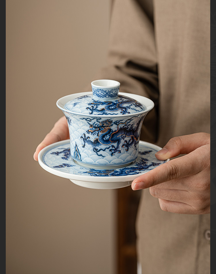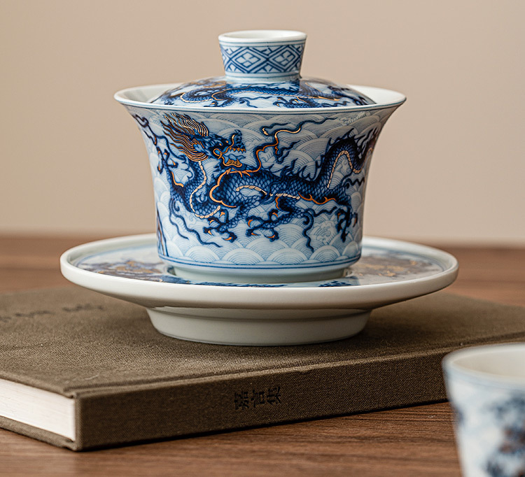 金銀錯青花龍_三才蓋碗
