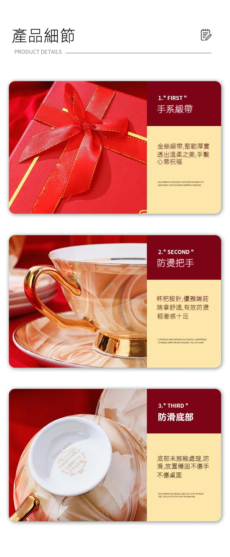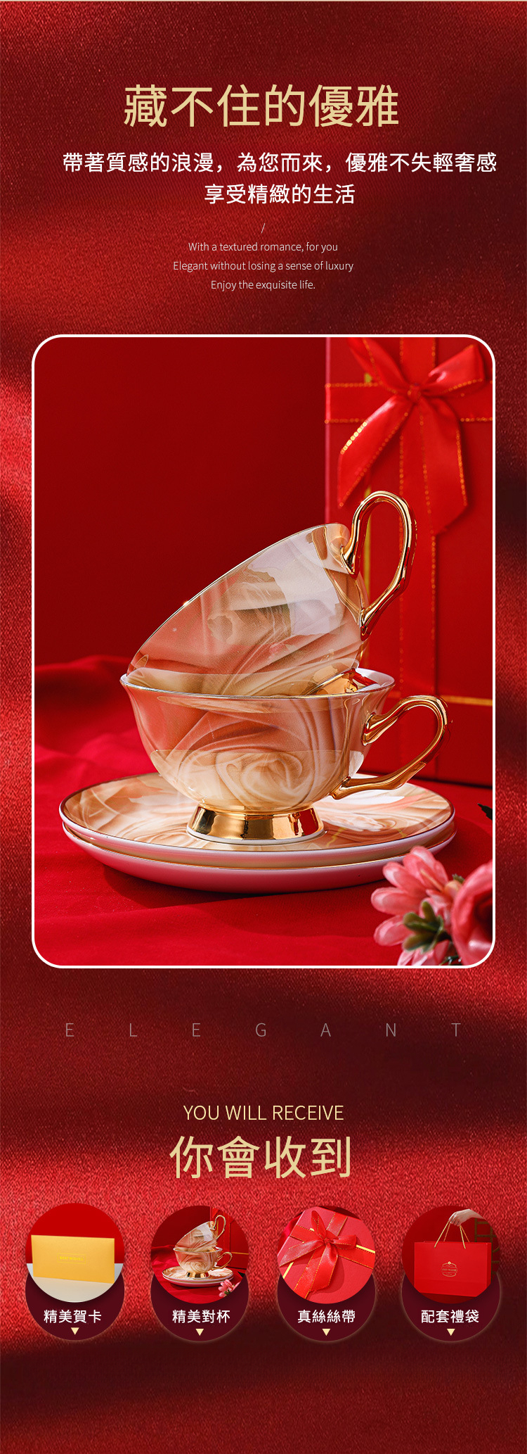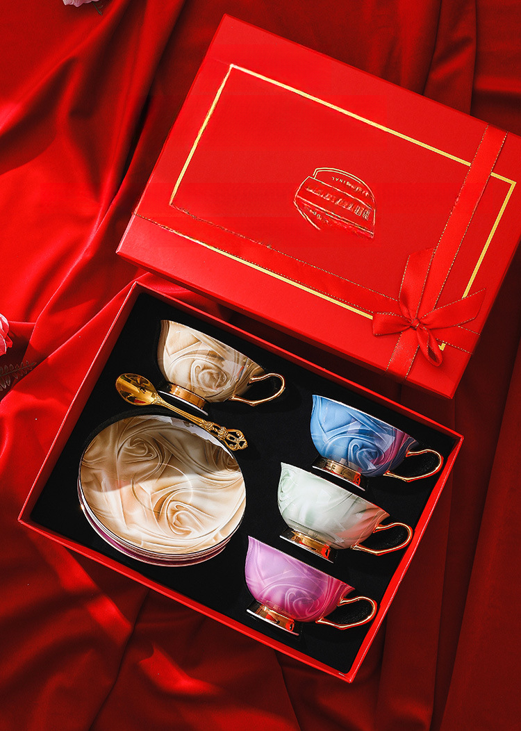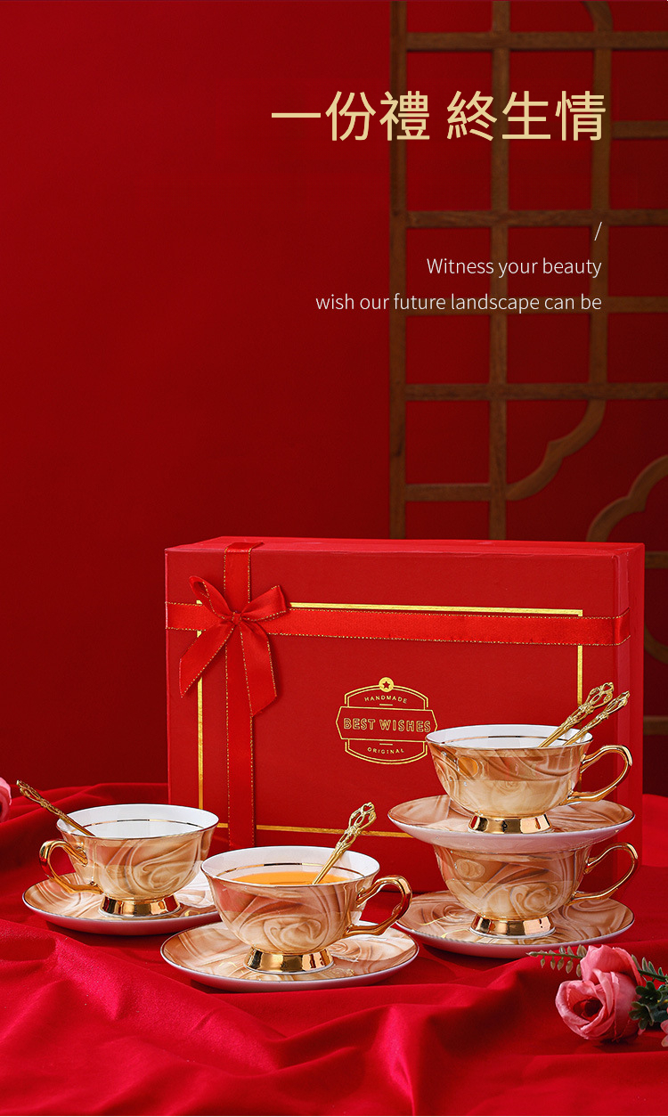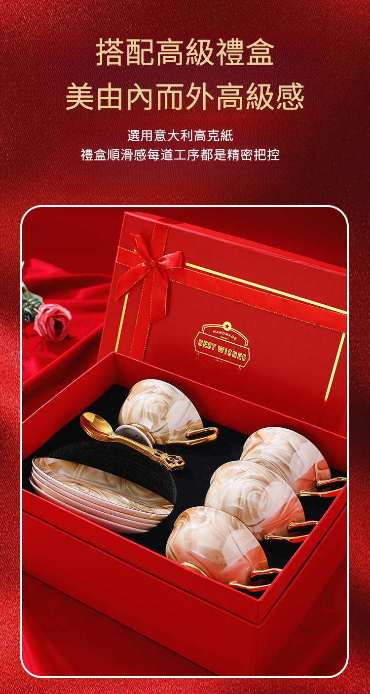 4杯碟4勺紅色禮盒裝礼盒装