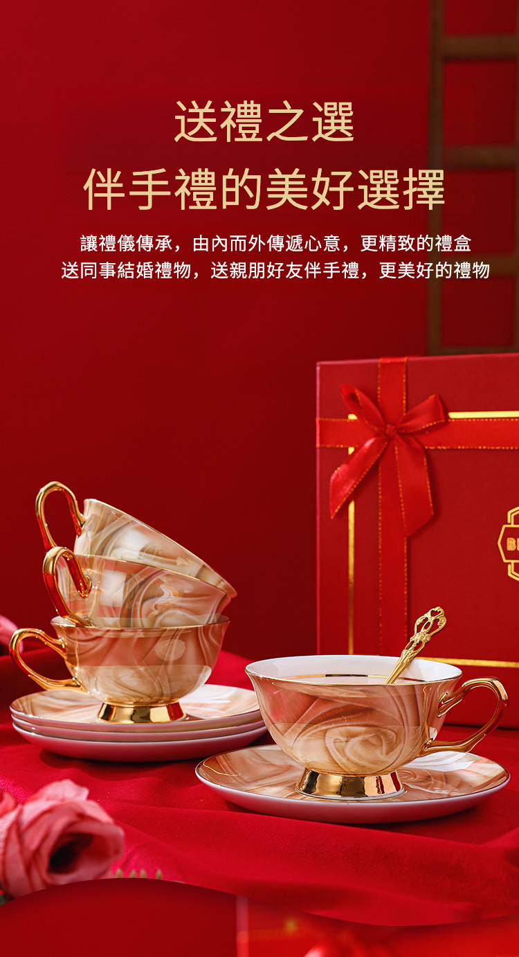 6杯6碟6勺紅色禮盒裝礼盒装
