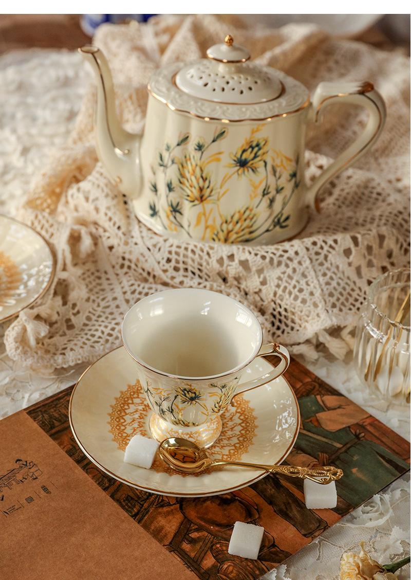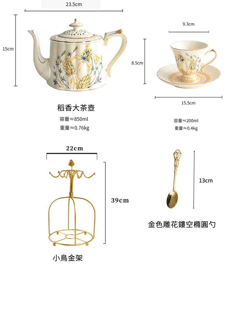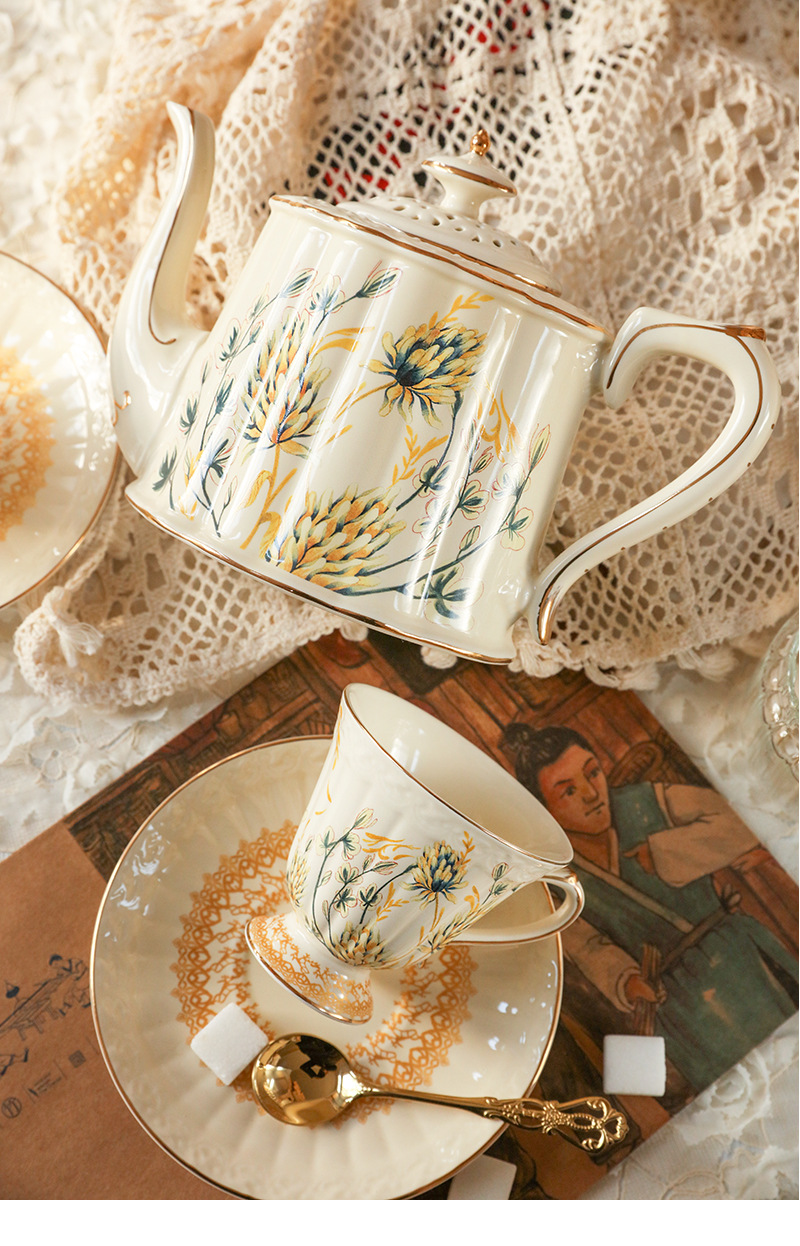 稻香大茶壺+4杯4碟+4个鏤空雕花勺