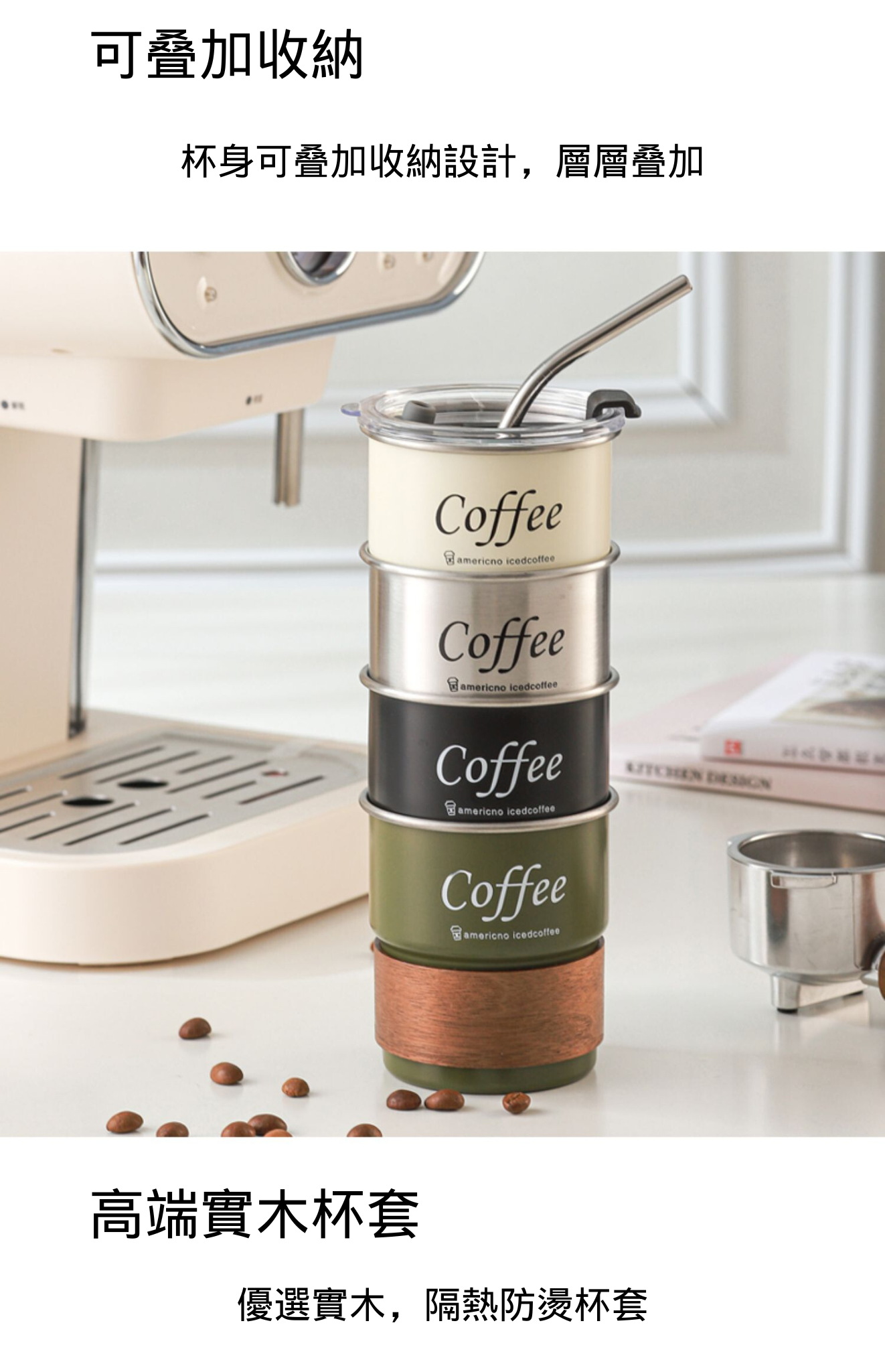 【咖啡杯+杯套+杯蓋+吸管】
