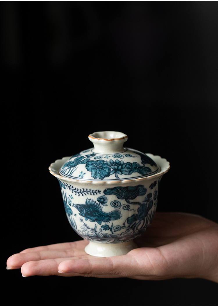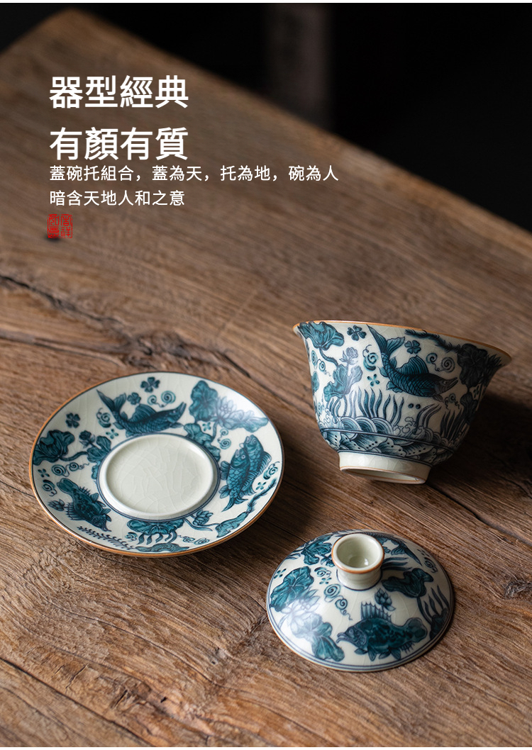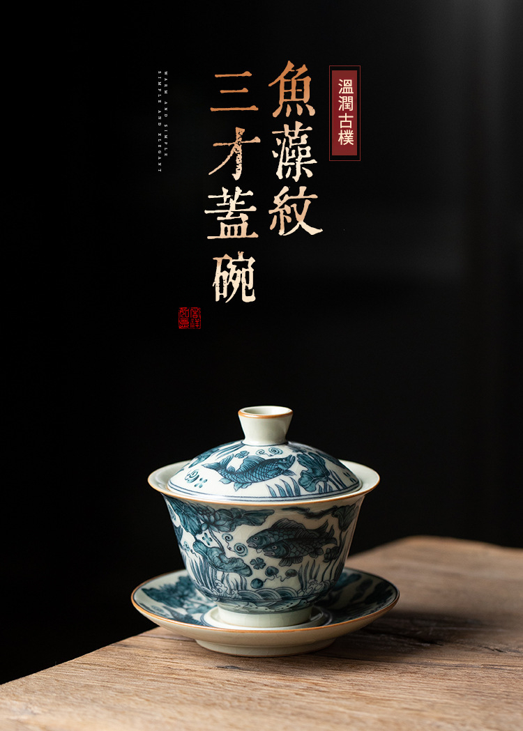 魚藻紋三才蓋碗